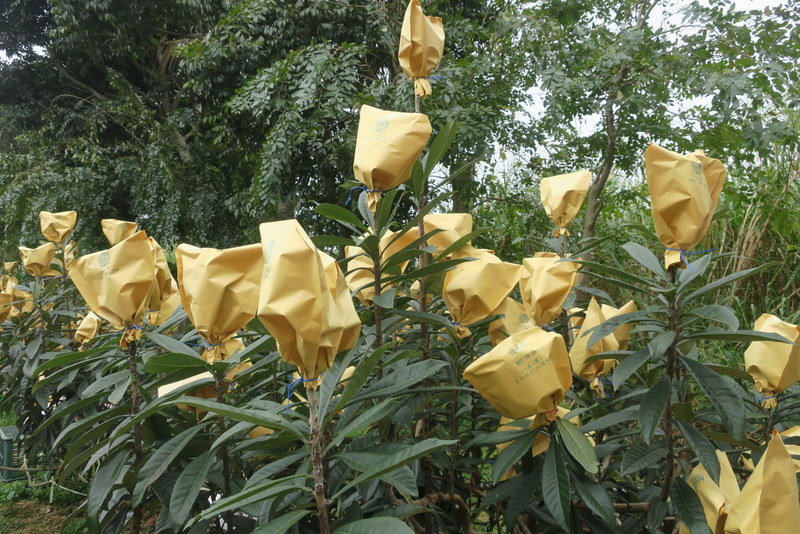And the next day we visited the very remote and tiny Shanli Train Station and nearby Kalito’od Church 山里福音教會 in Beinan Township, where sugar-apples are growing everywhere, and also loquat (pipa). The fruits are covered in paper bags while they mature, to stop them being eaten by hungry animals ….