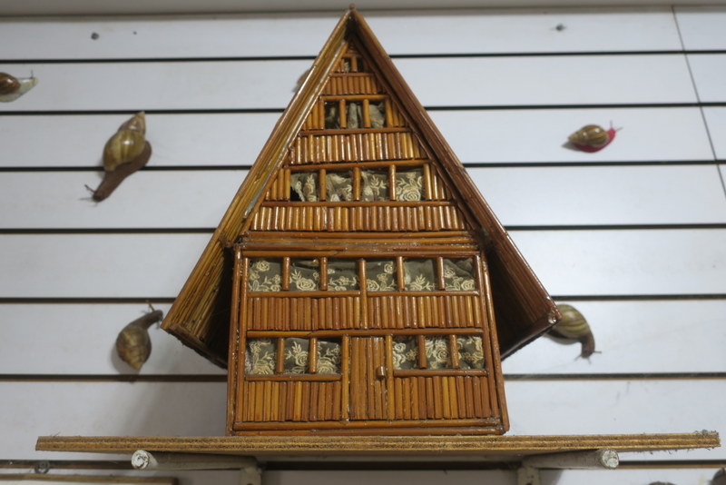 In a nearby noodle shop, the very creative owner, now aged 80, had taken all the used disposable chopsticks left by customers – to make wooden models. Most impressed!