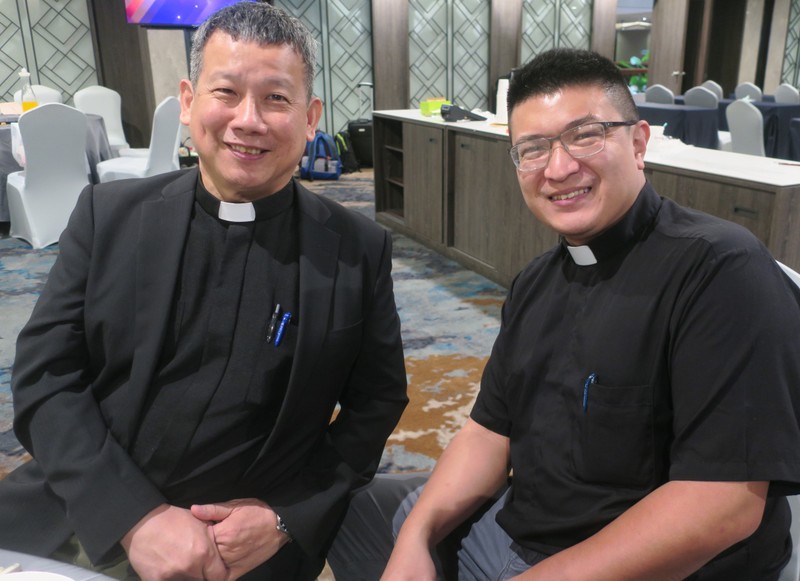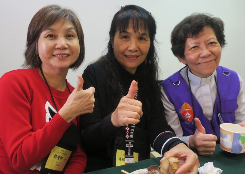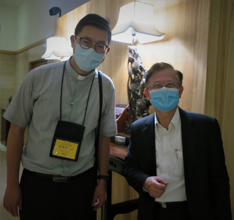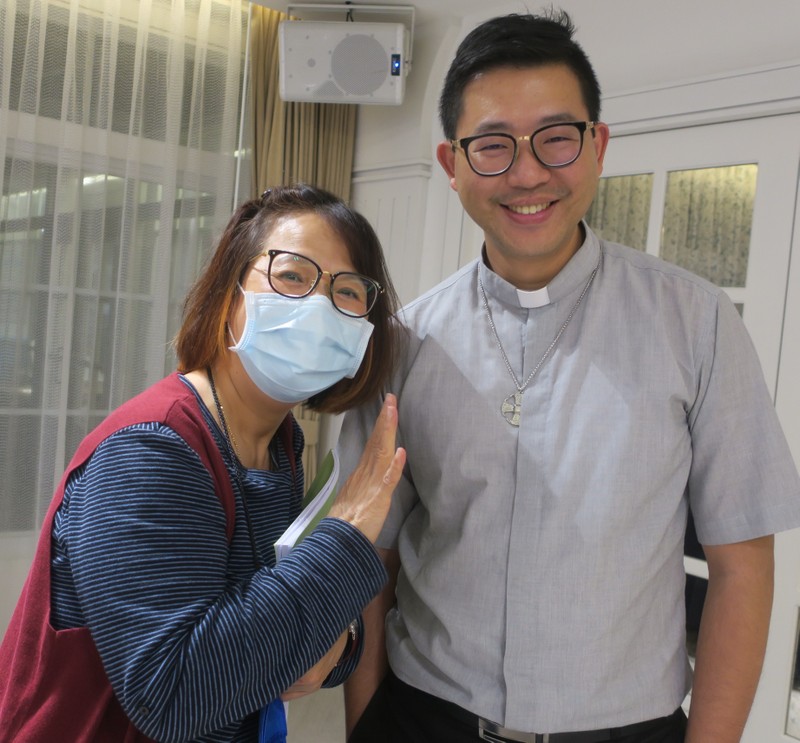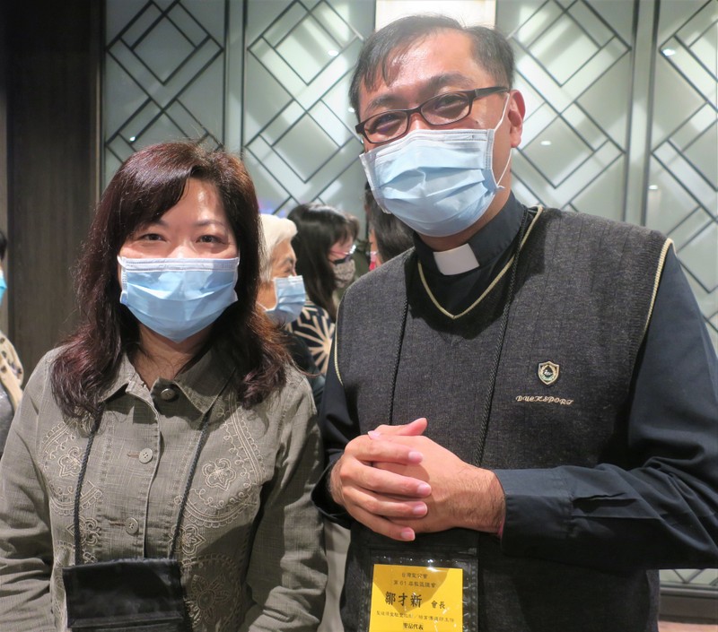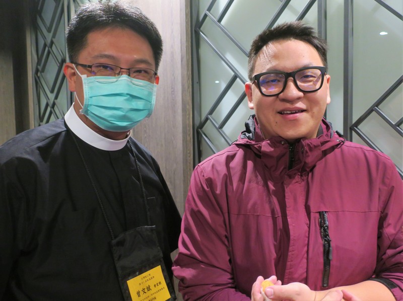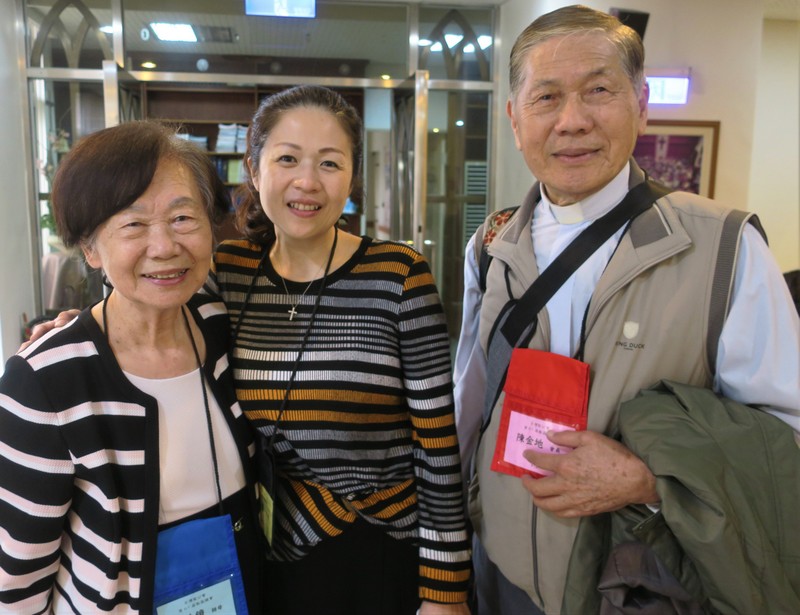 Among the arrivals was Mr. John Chuang 莊立忠, newly-retired just last week (on his 65th birthday, February 29!) from his job as assistant diocesan treasurer. He’s worked at the diocesan office in Taipei for 39 years, and actually is continuing in a voluntary role as treasurer for the next year. He knows the diocese better than most, and has lots of stories to tell, as you can imagine. Congratulations John! He’s pictured here below right with Huei-Yu, our new diocesan accountant…