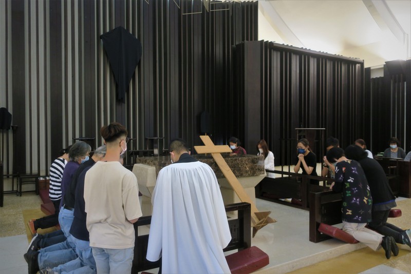 After Holy Communion, the altar was stripped and all the crosses covered over. In the darkness, we read the words of Psalm 22, ‘My God, my God, why have you forsaken me?’