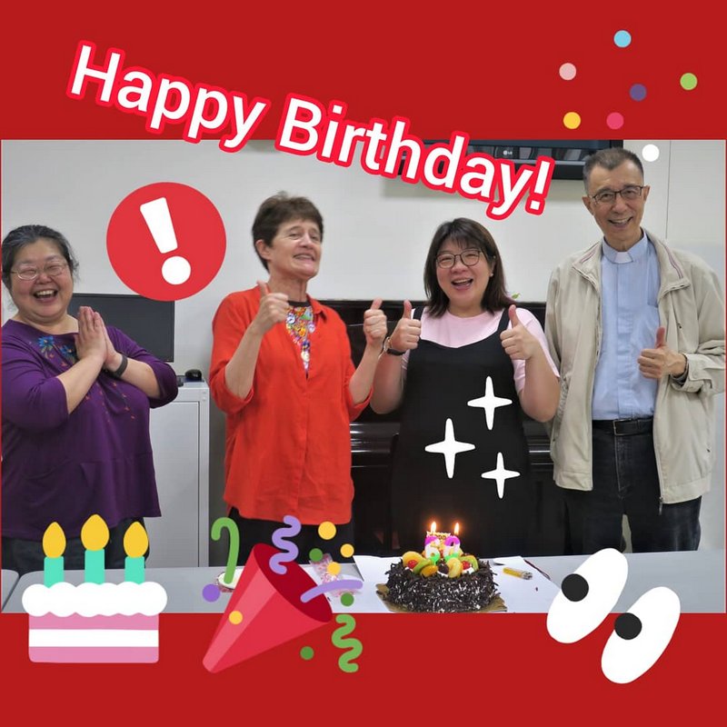 And we had a good time celebrating April birthdays in Advent Church, SJU Student Fellowship and the diocesan office too. Special thanks to Mei-Mei Lin for the huge birthday cake and candles…