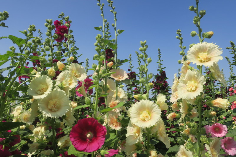 But not all is bad news down south. Yuanlin 員林 is a small town in central Taiwan and the government there has a Hollyhock Festival this month. Ah, it’s beautiful! On a weekend, the place is full of people coming to take photos and buy things at the local stalls. It really lifts people’s spirits to see all the flowers, and especially in the midst of this terrible drought.
