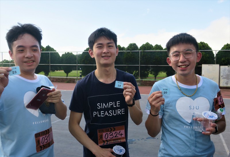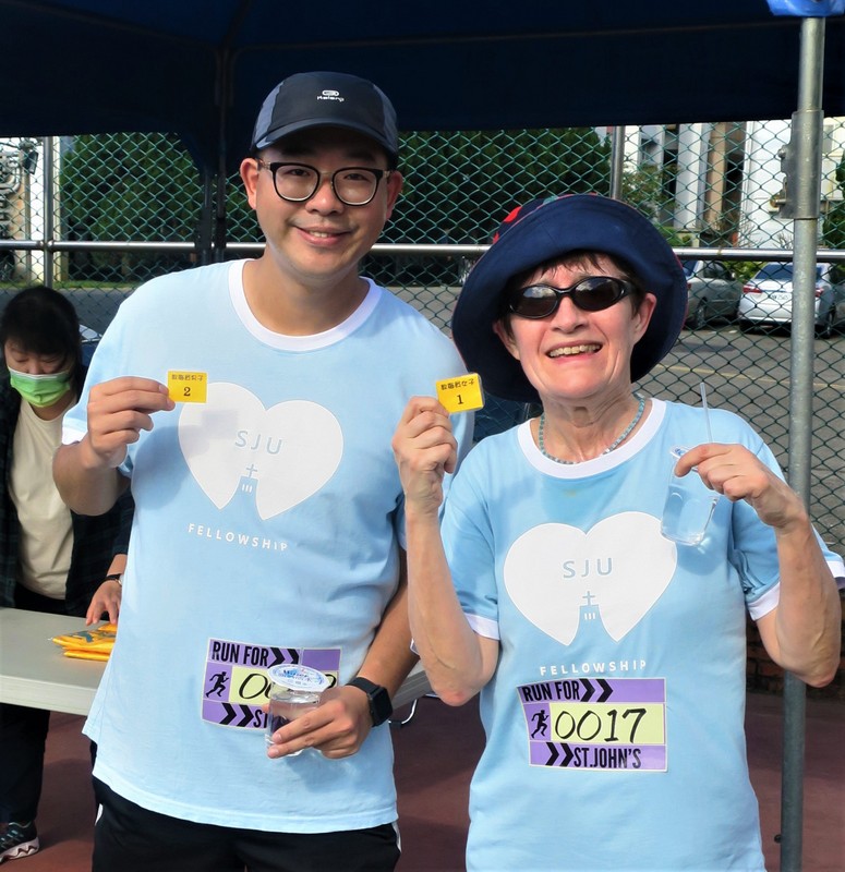 So last week was officially our annual celebration week for St. John’s University (SJU) 54th anniversary. Most of the large formal events were cancelled as a precaution in the pandemic, but one event that did go ahead was the 3.5 km fun run. Always the highlight for us every year! Our chaplain, staff and students wore our light blue student fellowship T-shirts, then we received yellow T-shirts as prizes. All first and second year students had to take part, plus we had others in fancy dress or indigenous outfits, along with some seniors from our community classes – in total over 600 people. A few staff joined in, with T-shirts available for the first 5 men and 5 women. The weather was perfect, and we ran round by the sea too. I was asked by our SJU reporter to take some photos as I ran, and she used some of them in her article (see here). Ah it was really fun, and check out the photos to see how we all did. Ha ha!