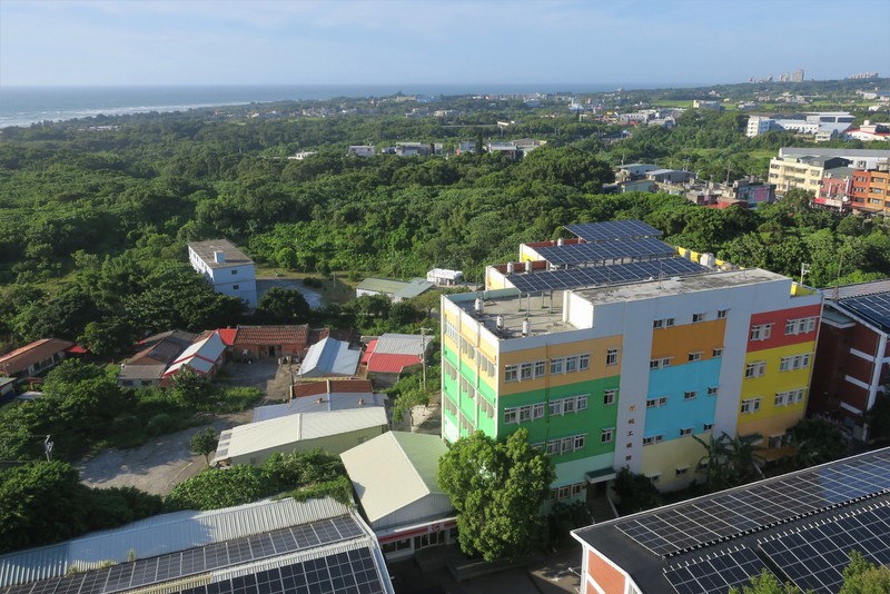 It’s high summer, with temperatures in their 30’s all day, top 20’s all night and high humidity all the time. Today it says it’s ‘32°C, feels like 40’. This comes just after sweltering our way through the hottest month of May since 1947, average temperature 27.8°C. All that sun means our solar panels, which cover almost every flat roof on the campus, are put to good use…