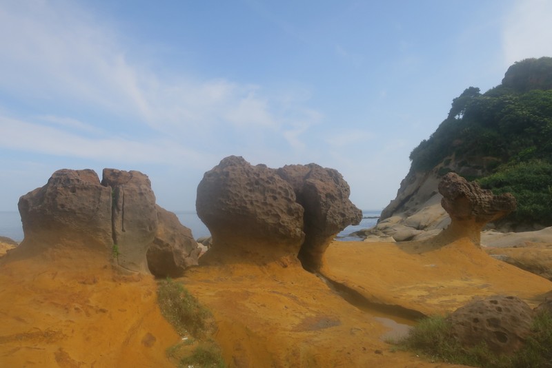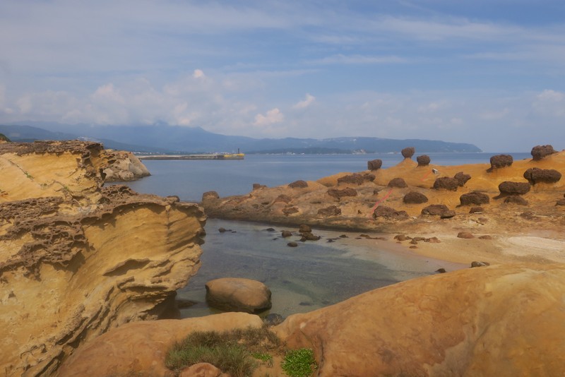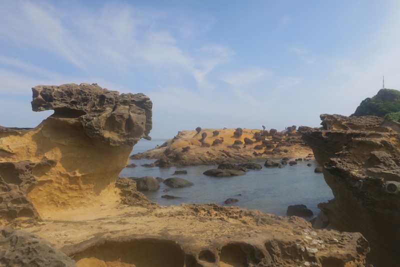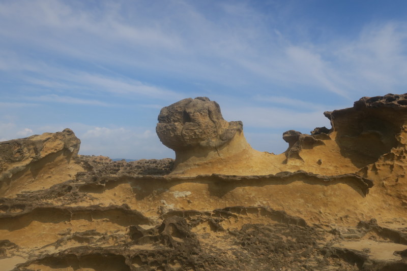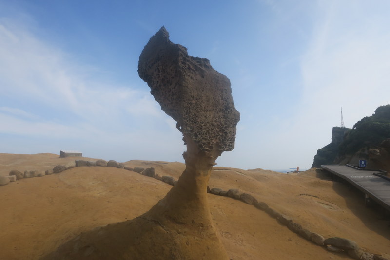 Three weeks ago, as part of our week off, I took off on the You Bike as dawn broke (already 30°C) and rode up the bicycle path that winds north around the coast, then on the coast road past the northern tip of Taiwan, the nuclear power stations, Dharma Drum Mountain, Juming Sculpture Park, and plenty more – all the way along to the Yehliu Geopark, where the rock formations are stunning. The most famous is the much-admired and closely-guarded Queen’s Head….