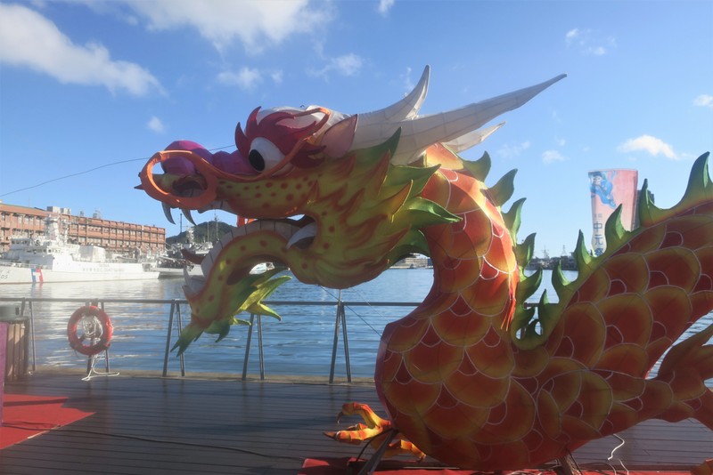 And on the Sunday I also went by bus all the way further round the northern coast to Keelung, the main centre for the Ghost Festival ceremonies, being held most evenings. These were the dragon lanterns down on the quayside….