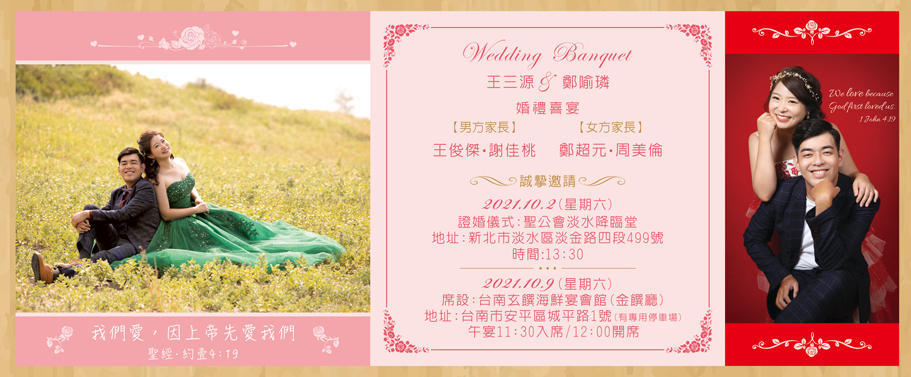 So, with Yu-Lin and her extended family being members of Advent Church, Tamsui, and with San-Yuan’s family home being in Tainan, it was arranged that the wedding service would take place at Advent Church on Saturday October 2 at 1:30 pm, with the official wedding reception being held in Tainan next Saturday, October 9.