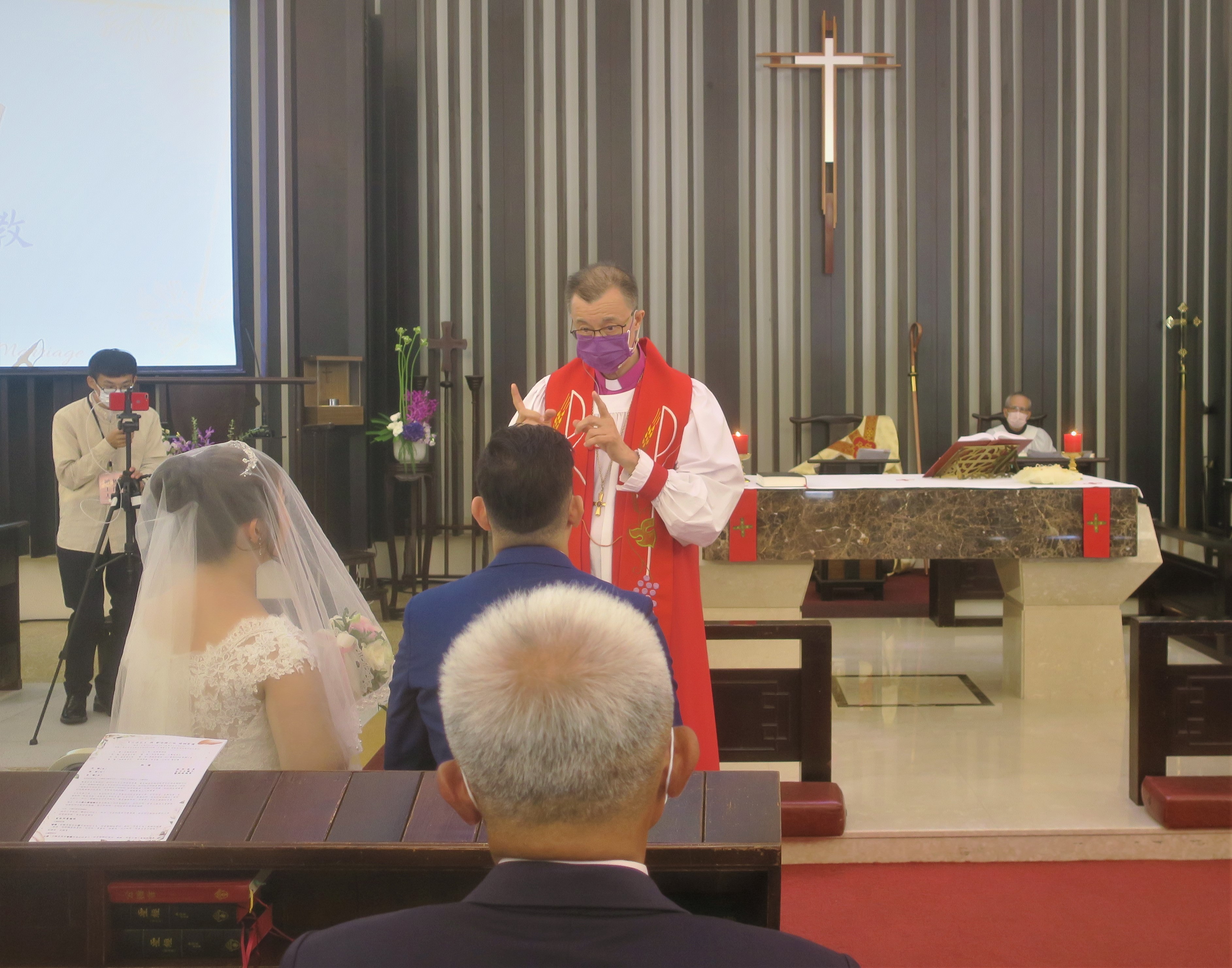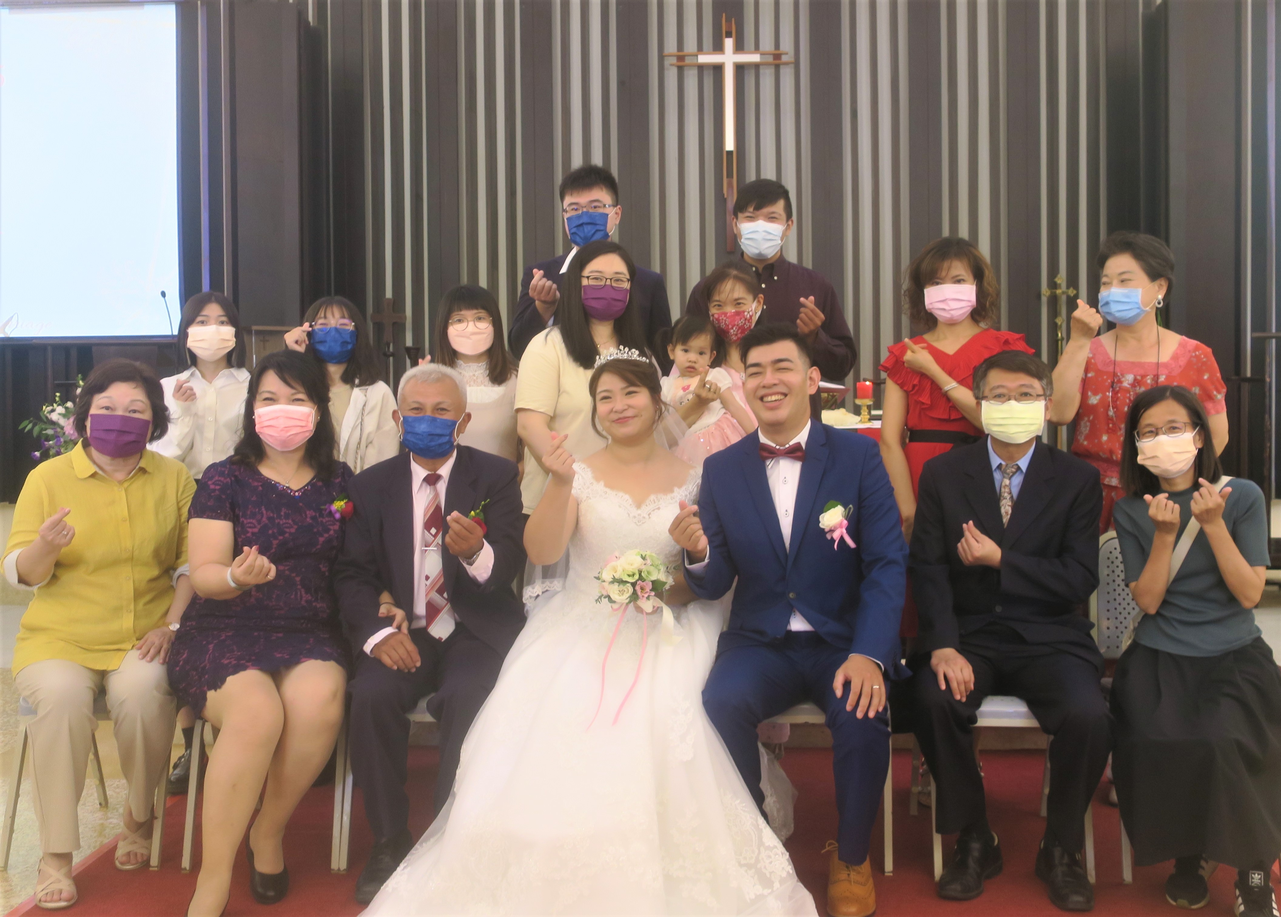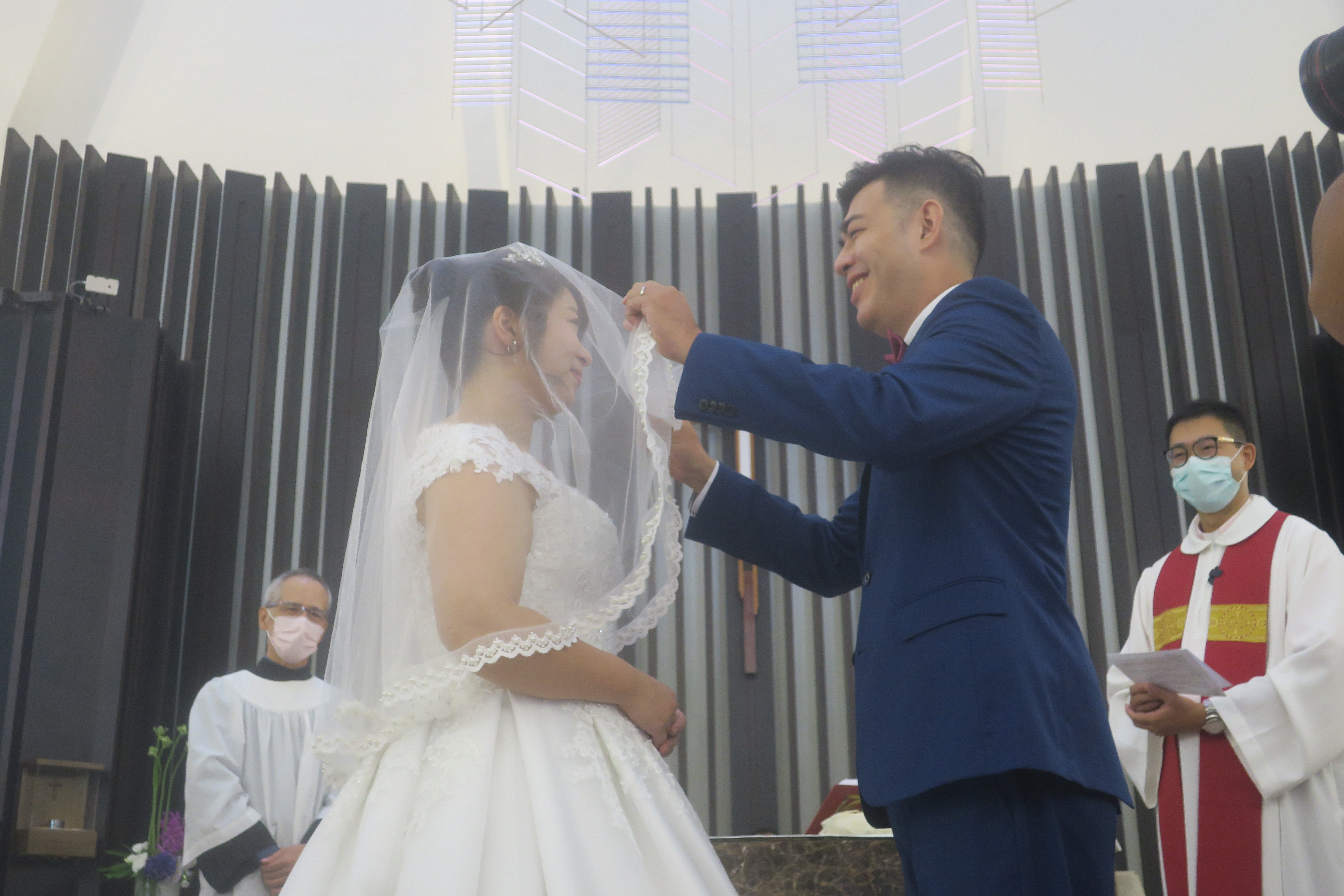 Taiwan is currently under Level 2 Pandemic Restrictions, which means facemasks are compulsory and indoor events are limited to 80 people. Because Advent Church is part of St. John’s University, so we are also allowed to use our Advent Church Centre as an overflow for a further 80 people, but because of the distancing rules, we would not be allowed to host any kind of formal reception with food. So after the wedding everyone went home with a box of delicious finger food to enjoy instead.