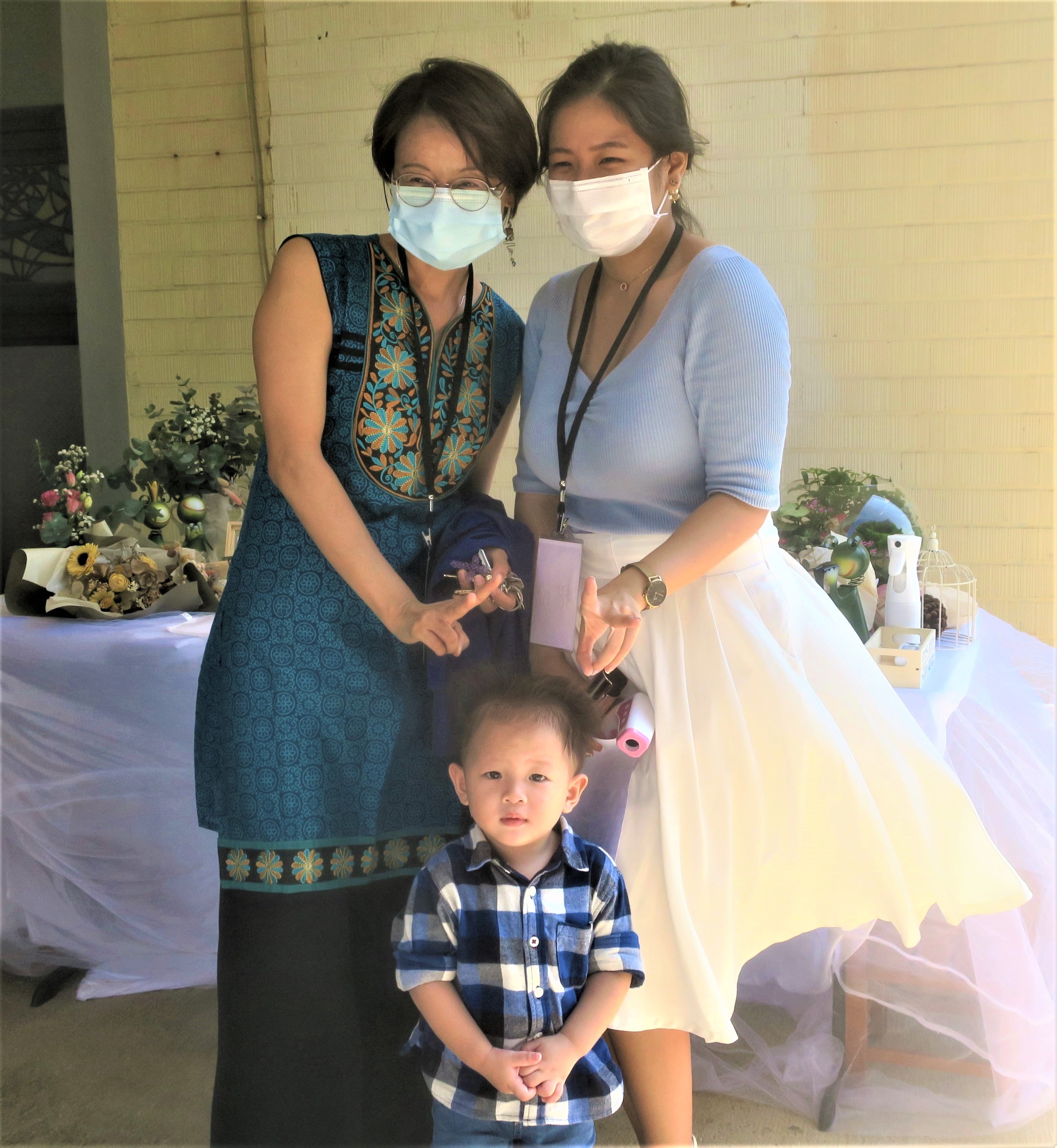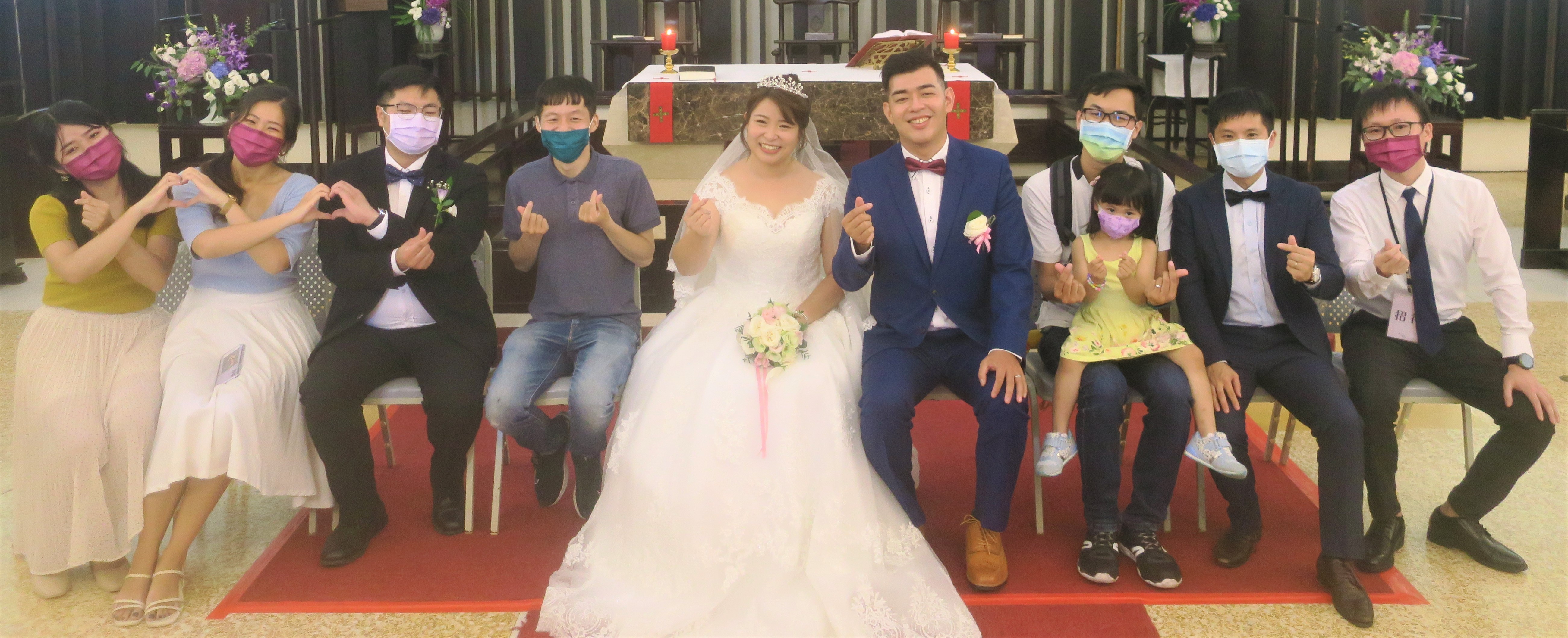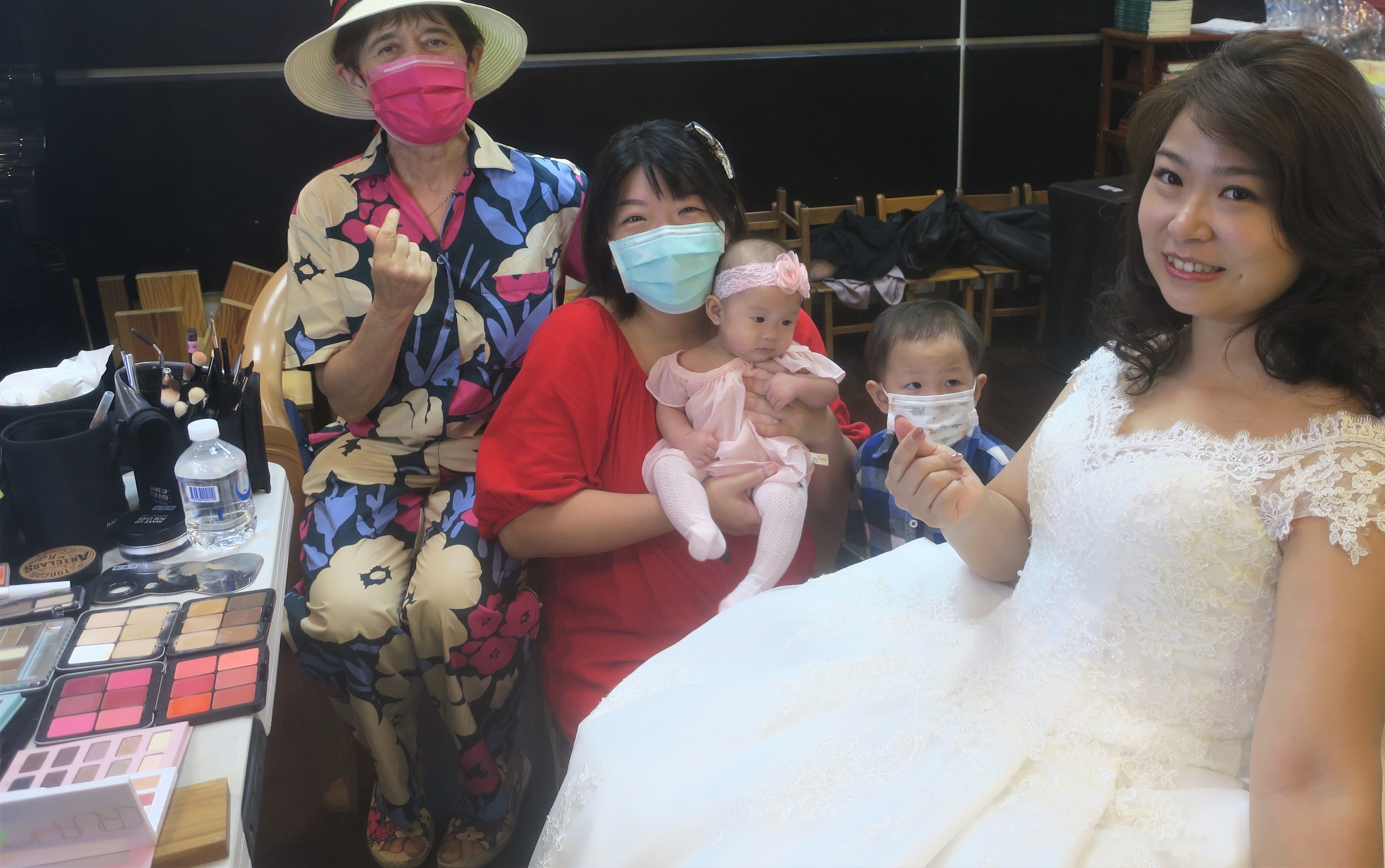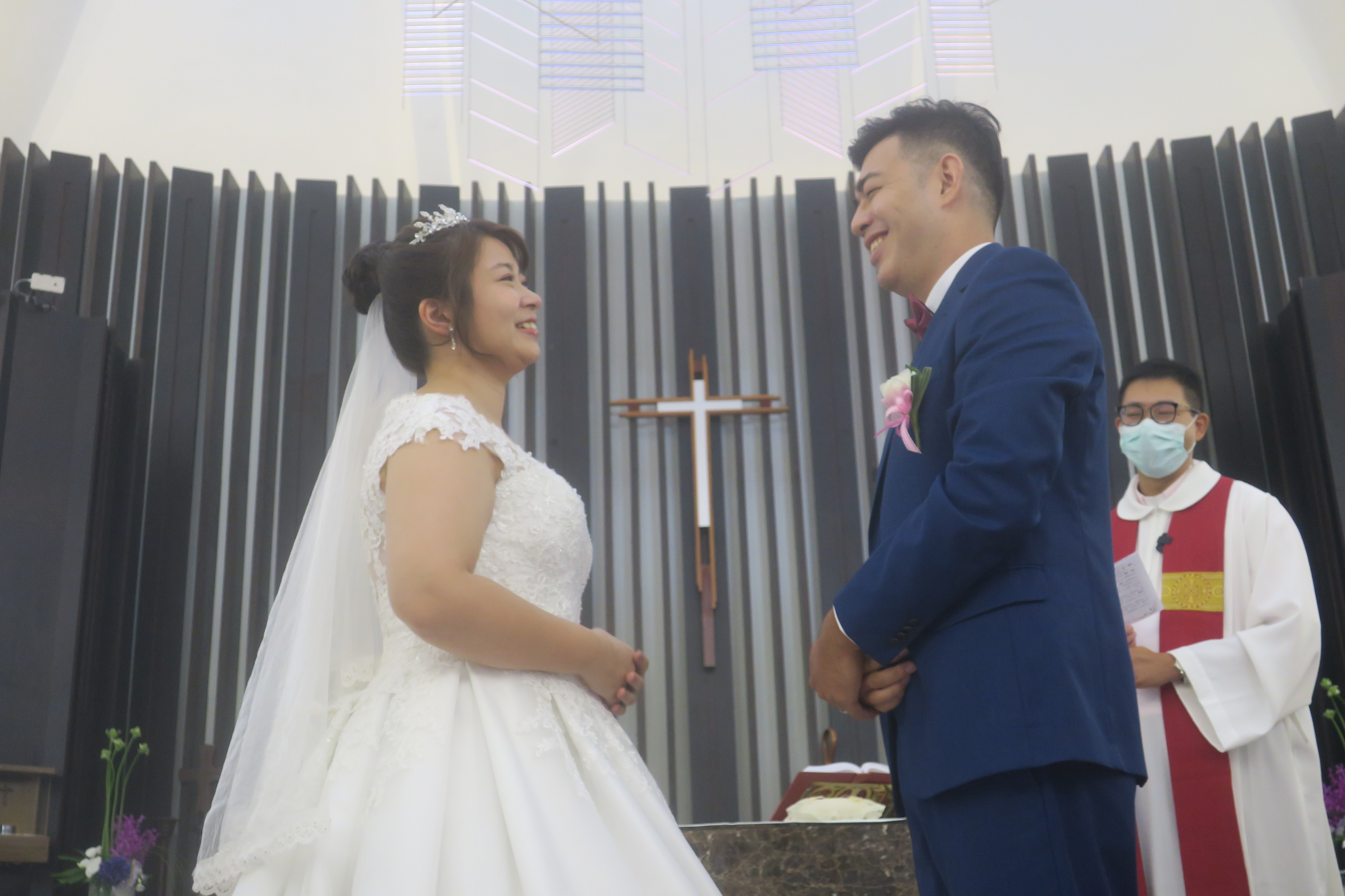 Taiwan is currently under Level 2 Pandemic Restrictions, which means facemasks are compulsory and indoor events are limited to 80 people. Because Advent Church is part of St. John’s University, so we are also allowed to use our Advent Church Centre as an overflow for a further 80 people, but because of the distancing rules, we would not be allowed to host any kind of formal reception with food. So after the wedding everyone went home with a box of delicious finger food to enjoy instead.