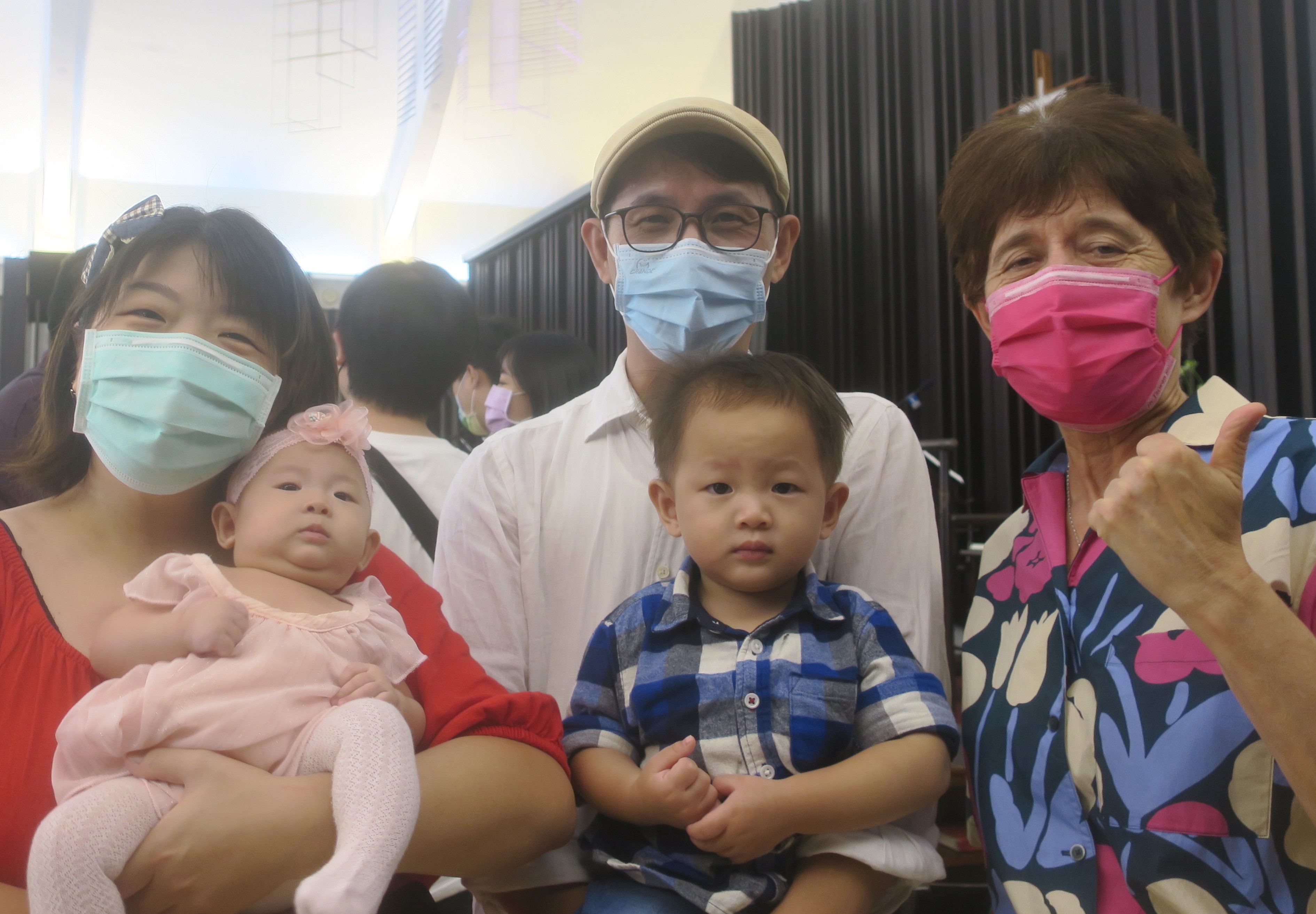 At the wedding, we were delighted to welcome Sheerah and her husband, Yu-Wei. We first met Sheerah some years ago, when she came with a team from the Diocese of West Malaysia to Advent Church to lead some training for our children’s summer camps, a program called Kid’s Games. So she got to know many of our students and church members, including Yu-Lin. Since then, she has relocated to Taiwan, married to Yu-Wei. They have 2 children, Ethan who turned 2 on Saturday, and Eva, aged 4 months. Bishop Chang invites them to attend our monthly birthday lunches at the diocesan office, so they have got to know us all even better. Like San-Yuan, Yu-Wei is also a sound engineer, and he was invited to help with the sound system for the wedding. So with Yu-Wei busy, we all offered to help out with entertaining Ethan and Eva, who proved a big hit with everyone, and appear in lots and lots of photos. As it was Ethan’s birthday that day, it seemed an added bonus!