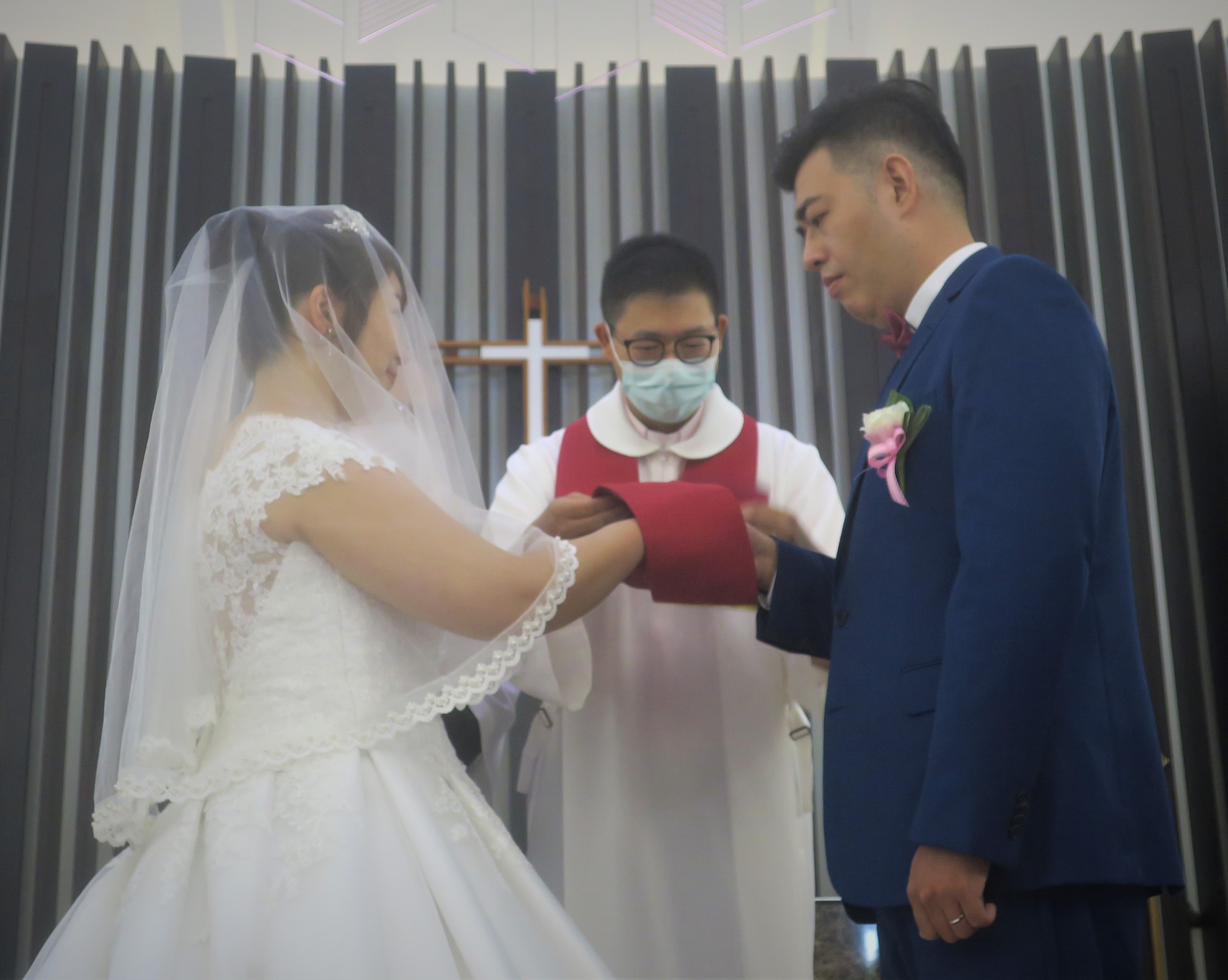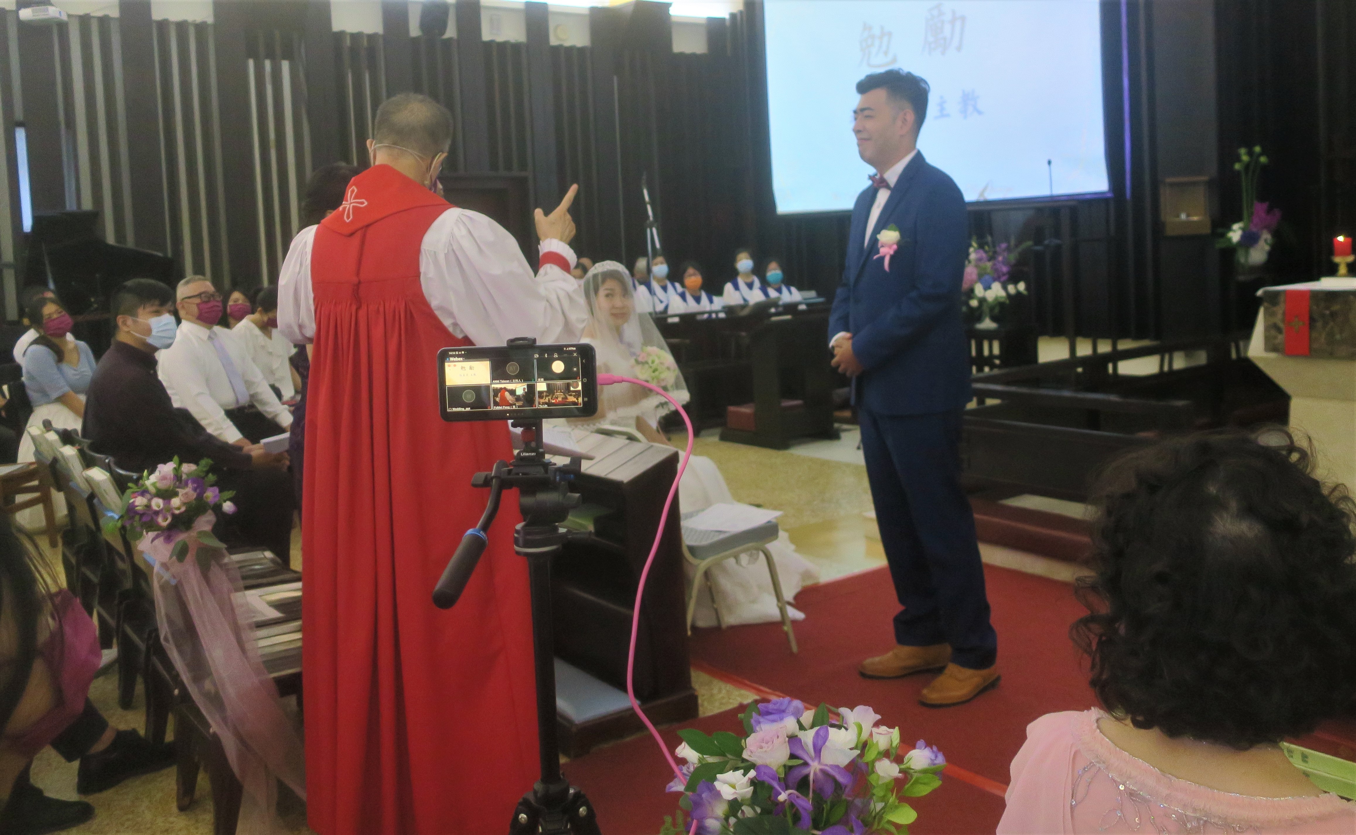 Yu-Lin and San-Yuan first met through the Taiwan branch of ANM 萬國敬拜與讚美 ‘All Nations Worship & Praise Ministries’, which started in South Korea in 1987, and sends out mission teams around the world to reach Chinese-speaking people with the Gospel. Yu-Lin studied at university in Tainan, and in 2008, she and San-Yuan vaguely knew of each other through both studying on the ANM training program in Tainan. Then in 2018, they both attended 3-month ANM “Intercultural Community Mission Training” programs in Germany that overlapped by about 6 weeks. That was the start of their relationship. Yu-Lin then spent a further year in Germany with ANM, returning to Taiwan in May 2020 to join the Diocese of Taiwan internship program. Many of the people at the wedding on Saturday were connected with ANM….
