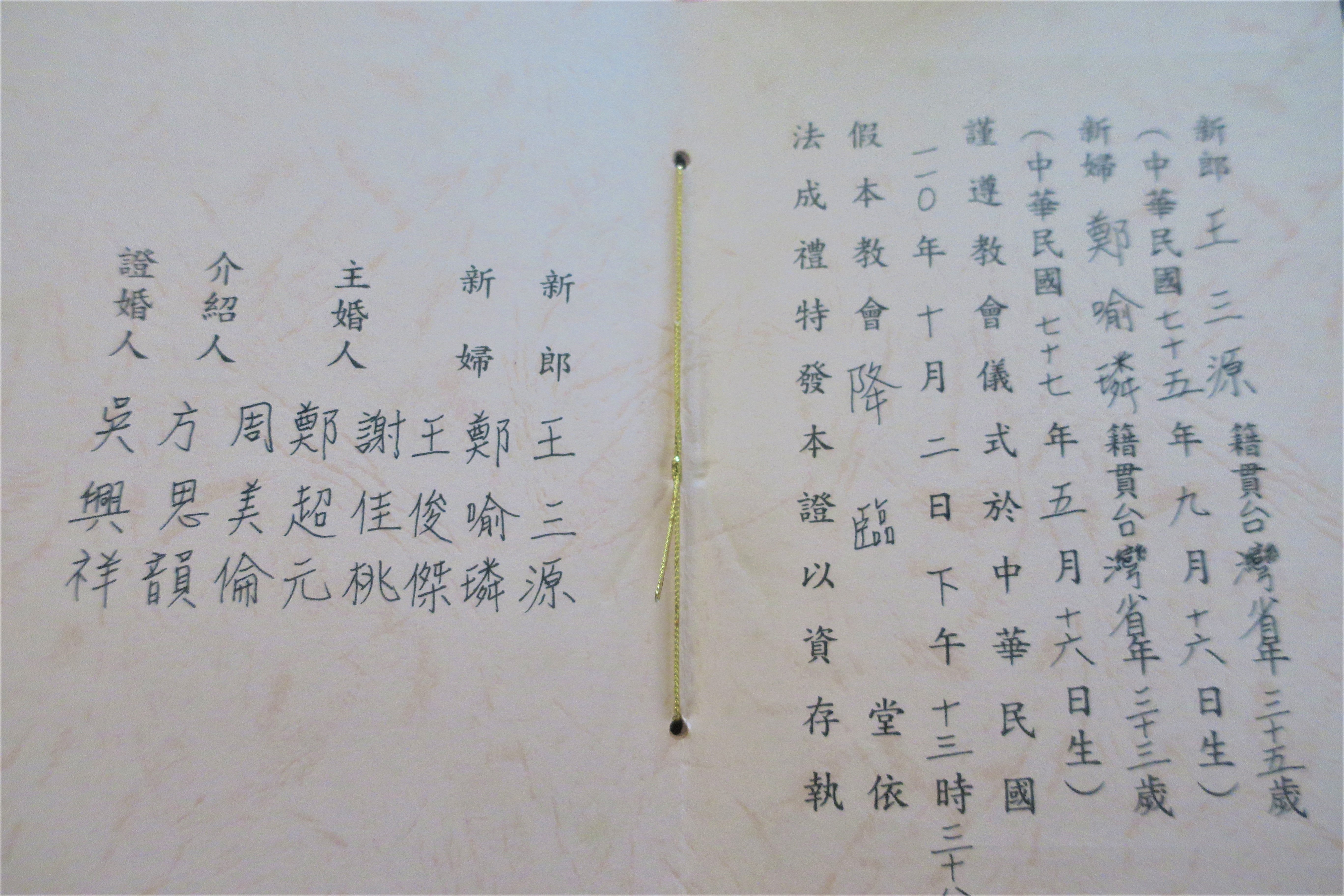 So, with Yu-Lin and her extended family being members of Advent Church, Tamsui, and with San-Yuan’s family home being in Tainan, it was arranged that the wedding service would take place at Advent Church on Saturday October 2 at 1:30 pm, with the official wedding reception being held in Tainan next Saturday, October 9.