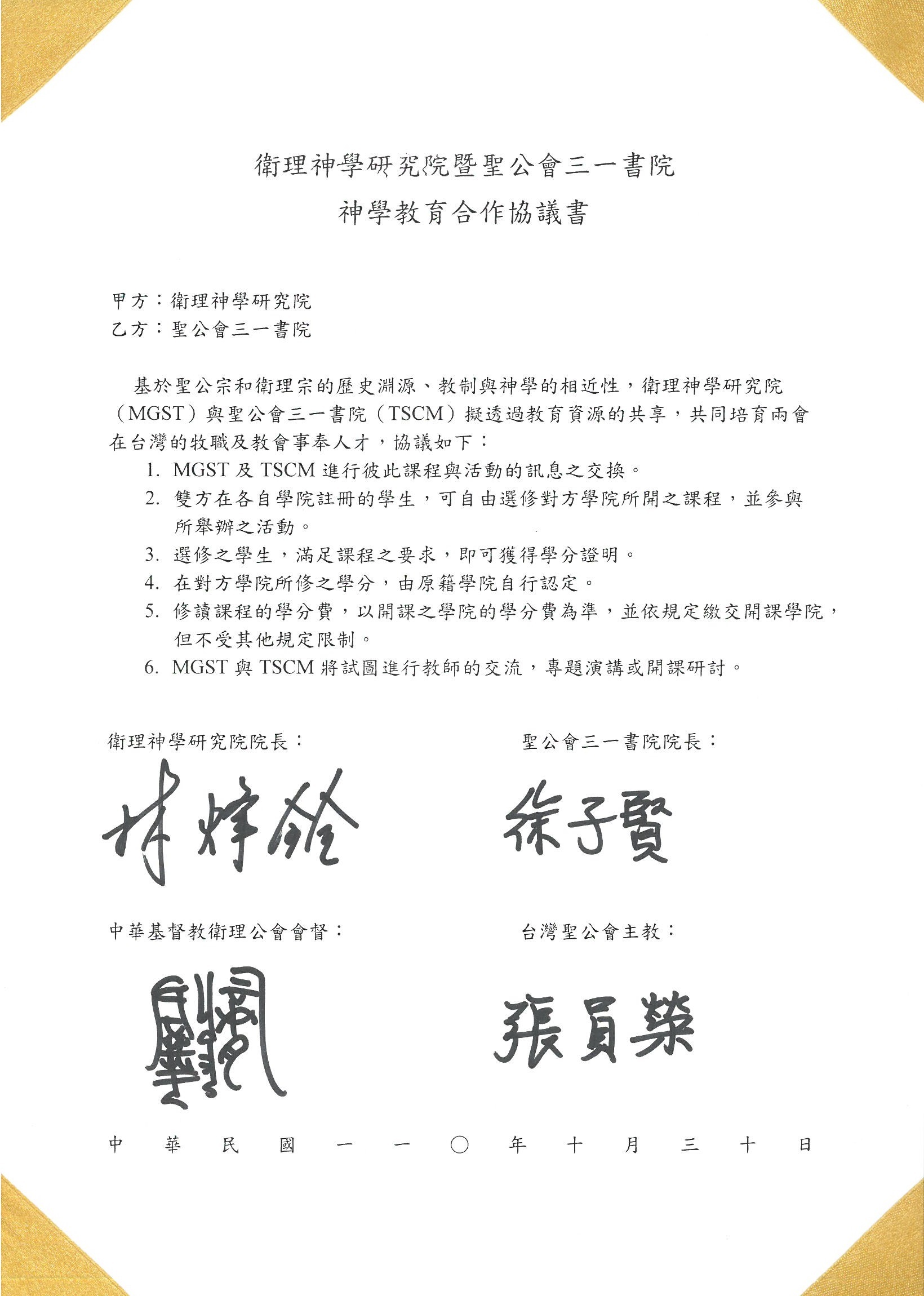 One thought on “Taiwan Methodist & Episcopal Churches Sign Historic Agreement of Cooperation in Theological Education 衛理神學研究院與三一書院合作簽約聯合感恩聖餐崇拜”