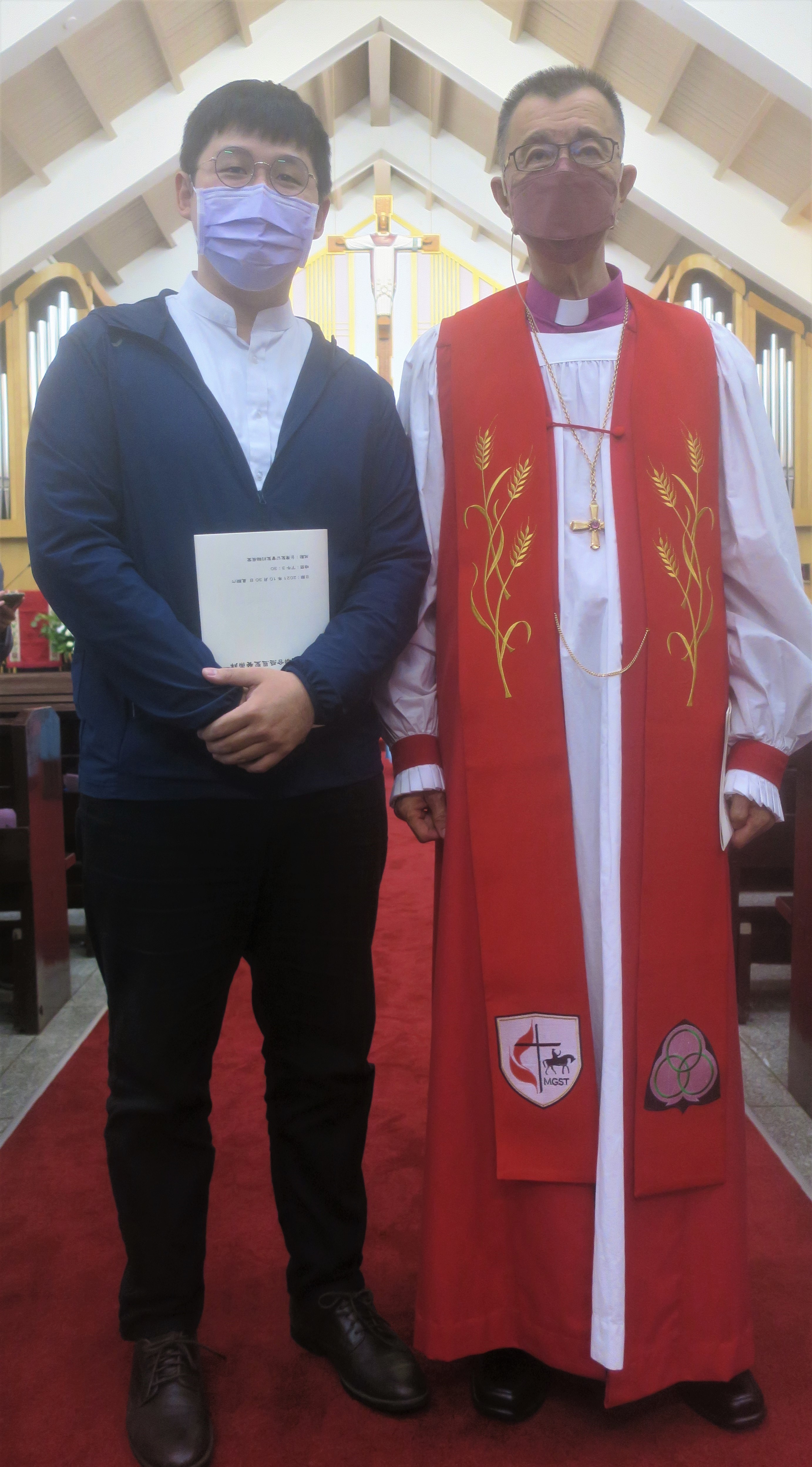 This special event was given added significance through the kindness of Mr. Gregory Chen 陳國瑞 of the Roman Catholic Church, who designed and made four beautiful stoles for the occasion, two for each church. The stoles have the logos of the Methodist Graduate School of Theology (MGST) 衛理神學研究院 and the Taiwan Episcopal Church’s Trinity School for Christian Ministry (TSCM) 三一書院, and were worn by both bishops and their chaplains at the service …..