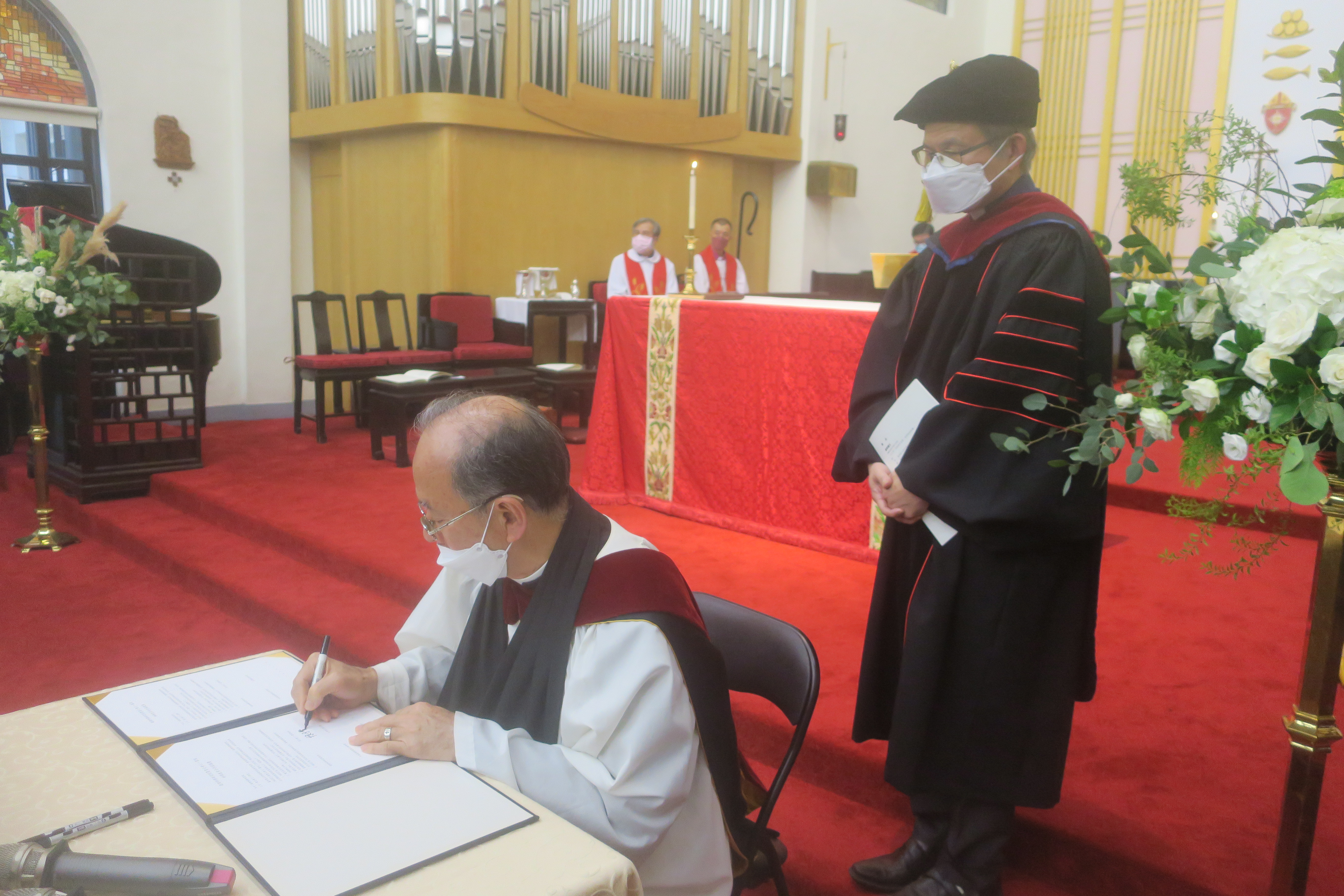 We give thanks to God for this historic and memorable day, for the agreement signed and those who are on the frontlines at TSCM and MGST in making this cooperation happen, including Rev. Antony F. W. Liang 梁凡偉牧師 and Rev. Tai-Yao Chiu 邱泰耀牧師 who served as bishop’s chaplains at the service and wore the specially-designed stoles. We ask you to pray in the days ahead as our churches work more closely together in the field of theological education. To God be the glory!