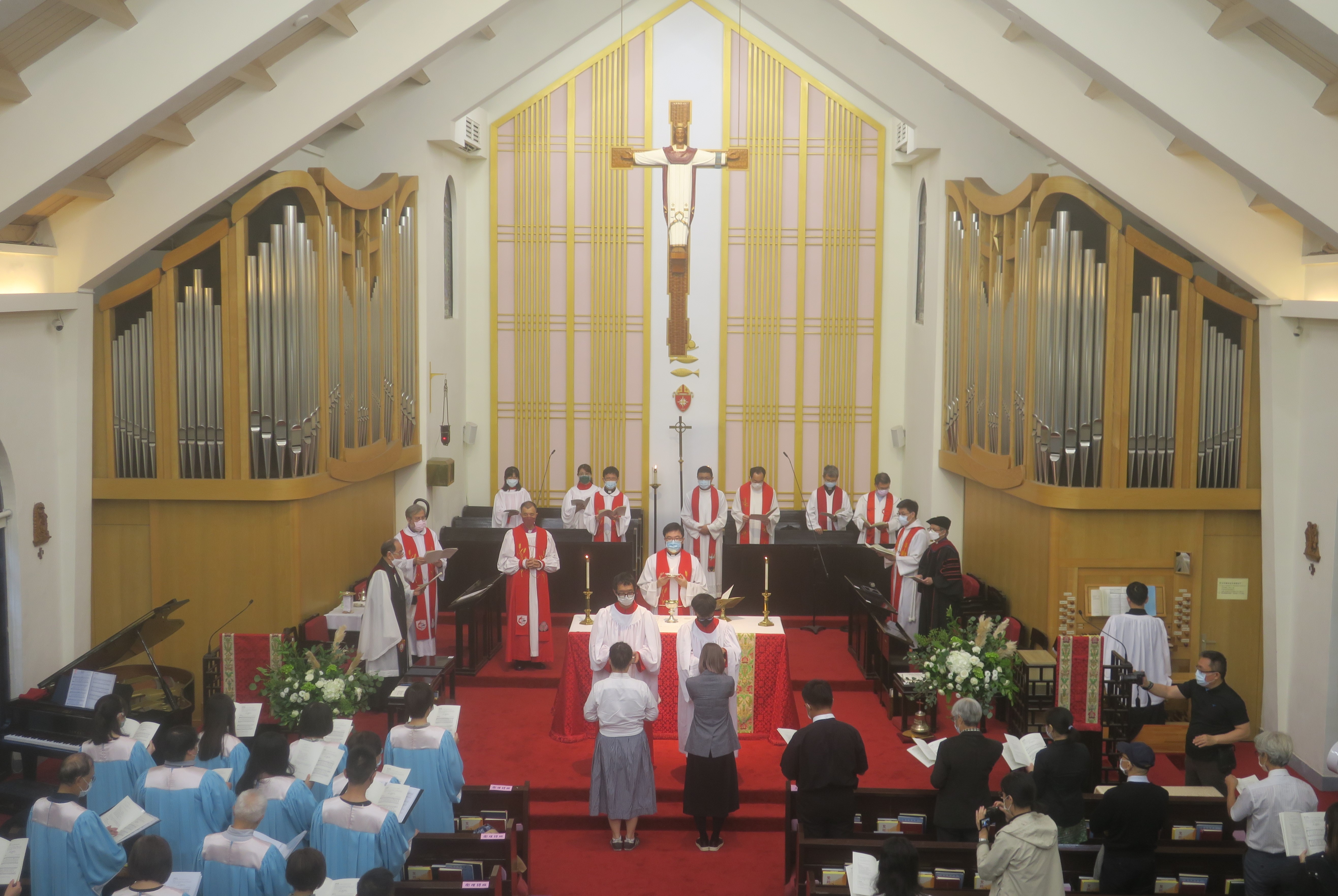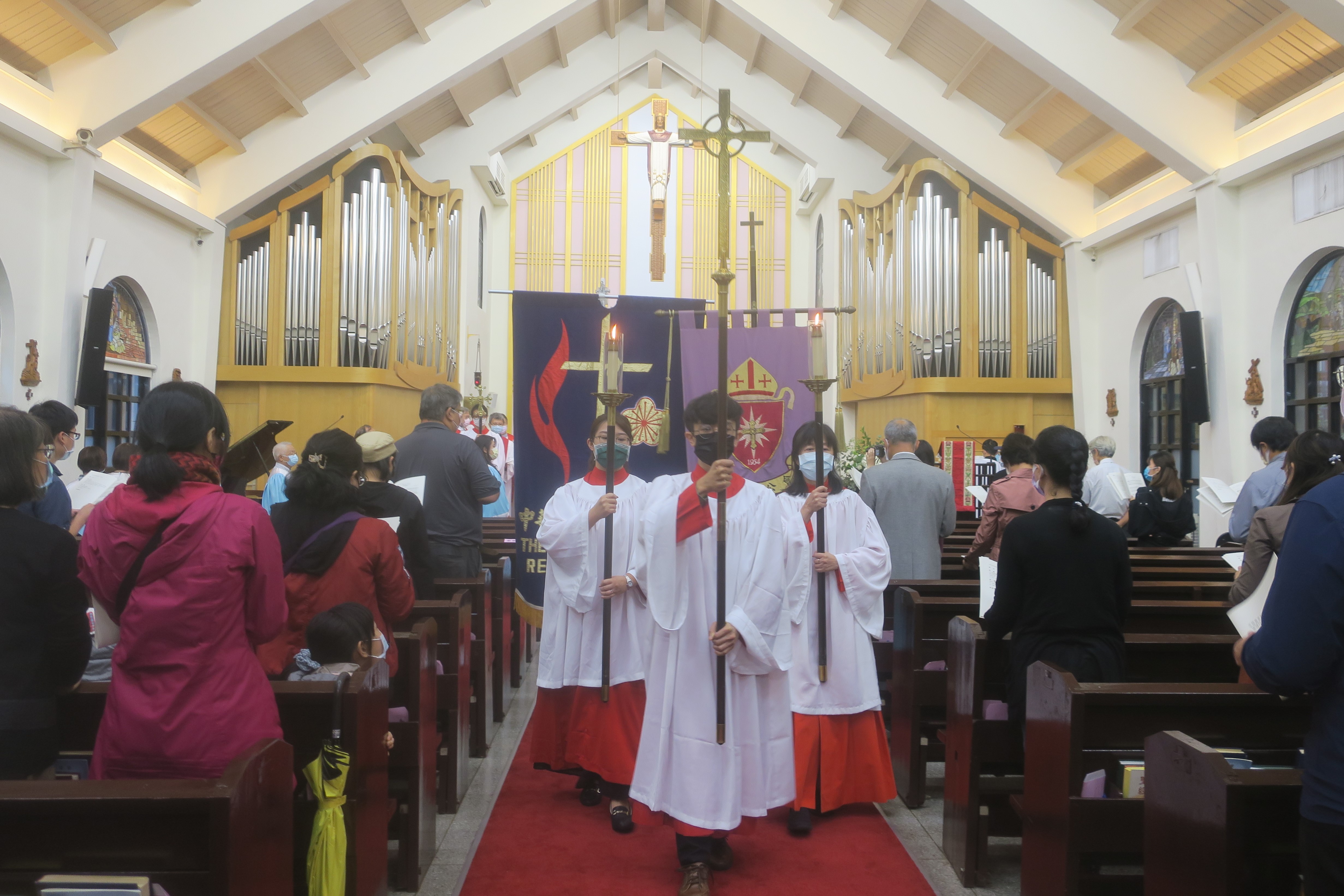 Since becoming Bishop of Taiwan last year, Bishop Chang has re-established and expanded Trinity Hall (originally founded in 1984), the diocesan theological program through which he himself did all his theological study. It is now known as Trinity School for Christian Ministry, under dean Rev. Canon David Chee 徐子賢院長, and working in cooperation with St. John’s University, Taipei. The Taiwan Episcopal Church has always been too small to operate its own theological college, and in the past has relied on sending seminarians to be trained at Taiwan’s Presbyterian or RC colleges (with supplementary courses at Trinity Hall on Anglicanism), and more recently Ming Hua Theological College in Hong Kong. Currently we have one first-year seminarian studying at Virginia Theological Seminary in the USA, two who have studied elsewhere and are now upgrading / completing their courses through TSCM, and we have two first-year seminarians who have just started full-time at TSCM this semester (they led the procession into the cathedral)….