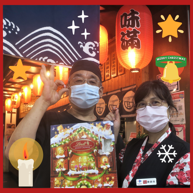 #MyAdventCalendar2021 #Day11: This is Hong-Chi 鴻琦 and his wife, Jin-Zhu 錦珠, much-loved members of Advent Church who run a Japanese Ramen Noodle Restaurant 味滿食堂 in the Carrefour Supermarket Complex in Tamsui. Their faith is very much part of their lives – see the cross on the back wall of the restaurant? And of course, the food is delicious and the service always first-class!