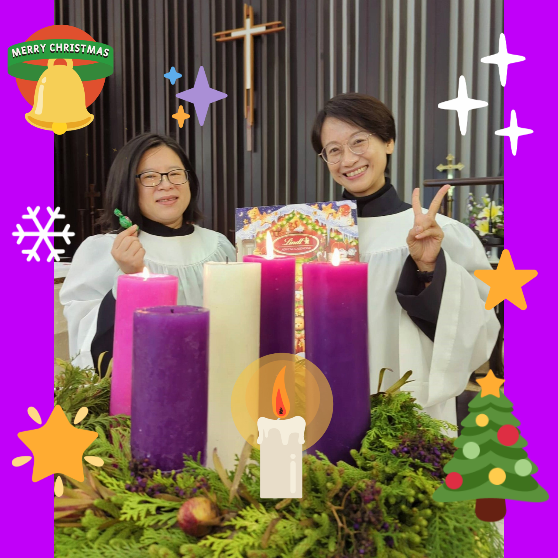 #MyAdventCalendar2021 #Day12: This is Huei-Ling ๆ ่ (left) and Shu-Jing ๆท้ (right) who are the best of friends and for the first time ever, they were both serving together at this morning’s Advent Church service. They both work for the Bishop of Taiwan, Lennon Yuan-Rung Chang, Huei-Ling in the diocesan office in Taipei, Shu-Jing in St. John’s University (SJU), where Bishop Chang is the chair of the board. Until this year, Shu-Jing was on the staff of the SJU Chaplaincy, she’s also a qualified Japanese teacher, skills put to good use in our companion diocesan partnership with Osaka. And they both came with me to India at Chinese New Year 2017 ~ we had a such a great time together!