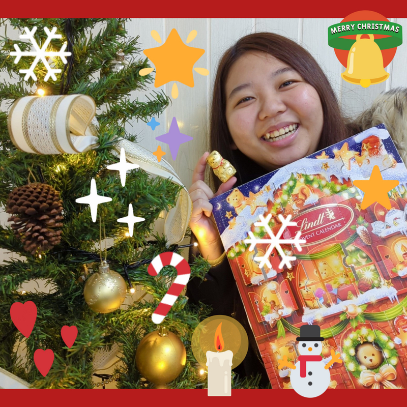 #MyAdventCalendar2021 #Day24: This is the very lovely Cai-Pei ้ๆฒ, just arriving now at St. John’s University (SJU), and all ready for her baptism during tonight’s Christmas Eve service ~ and she gets the largest Teddy Bear chocolate in the Advent Calendar! Ah, she’s so happy! She comes every Sunday to Advent Church from her home in Taoyuan, having graduated last year from SJU in Creative Design, a classmate and good friend of Yi-Ting who works on our SJU Chaplaincy staff and the one who originally invited her to join the student fellowship. They also did their senior project together on the theme of Advent Church, designing and making a wonderful welcome video, cards and a book, all now featured on the Advent Church website.