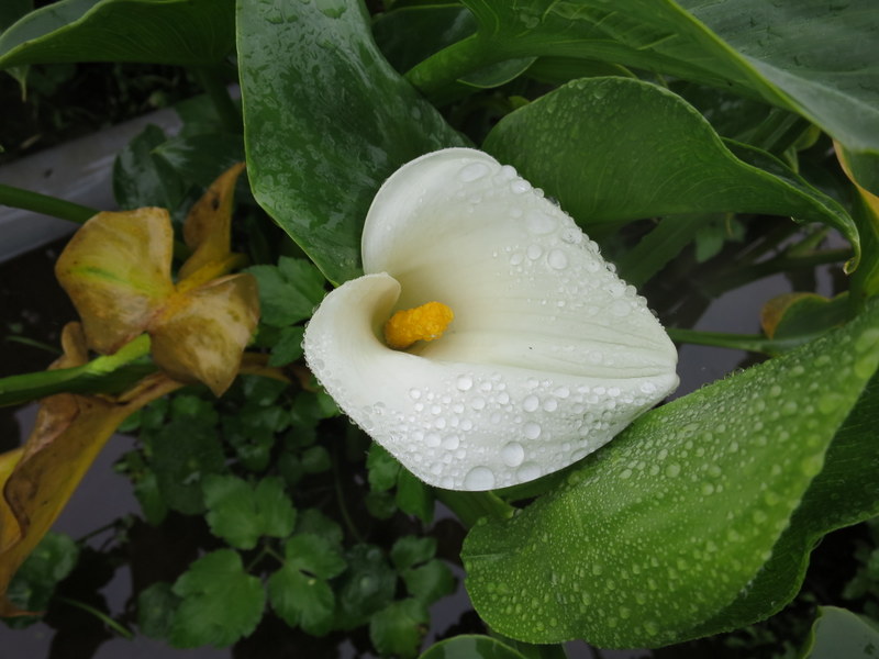 Leaving the Datun Mountain Range, the path goes down to Zhuzihu 竹子湖, at the top of the valley where the farms grow calla lilies, just starting to flower.