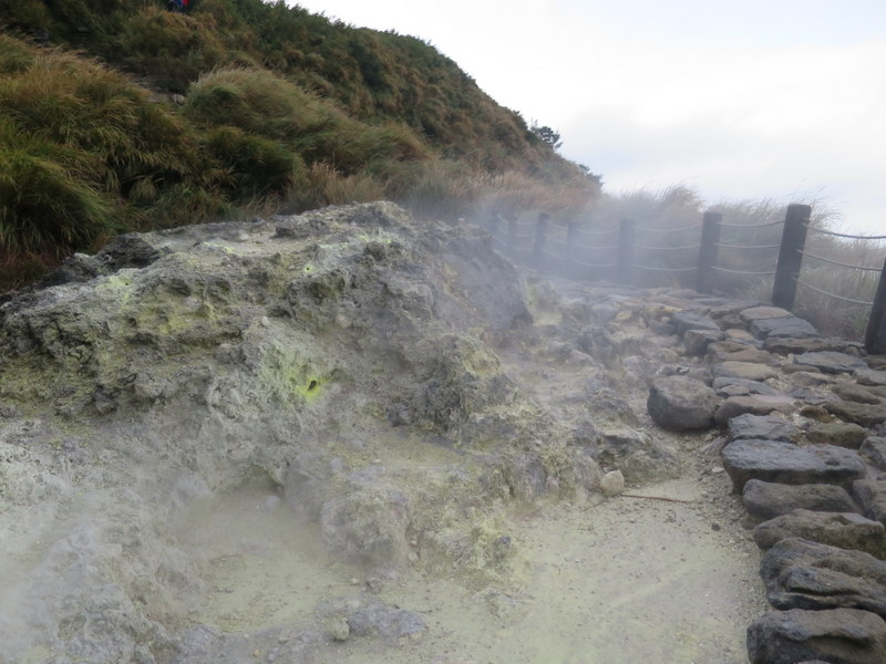 The next day, Sunday was also heavy rain, I had another day off. In the evening, the rain stopped and a cold front came along, so Monday morning was very cold, but forecast to stay dry. On Monday January 31, CNY Eve, I set off for the highest part of the trail, Section 3, from Xiaoyoukeng 小油坑 to Fengguikou 風櫃口 via Qixingshan 七星山, 1120 m. I had also done this section many many times before; it helps to know the route! It was 6.2°C at Xioayoukeng 小油坑 Visitor Centre, and 5°C up at the top of the mountains. Brrrr! Mostly it was overcast, but it stayed dry and the sun even came out a few times, though this was to be the last time I would see the sun for the rest of the week. The trail starts with the fumaroles belching sulpur fumes at Xioayoukeng 小油坑. The views were great!