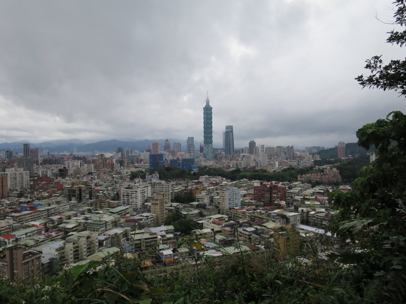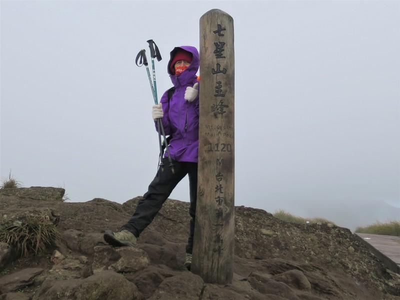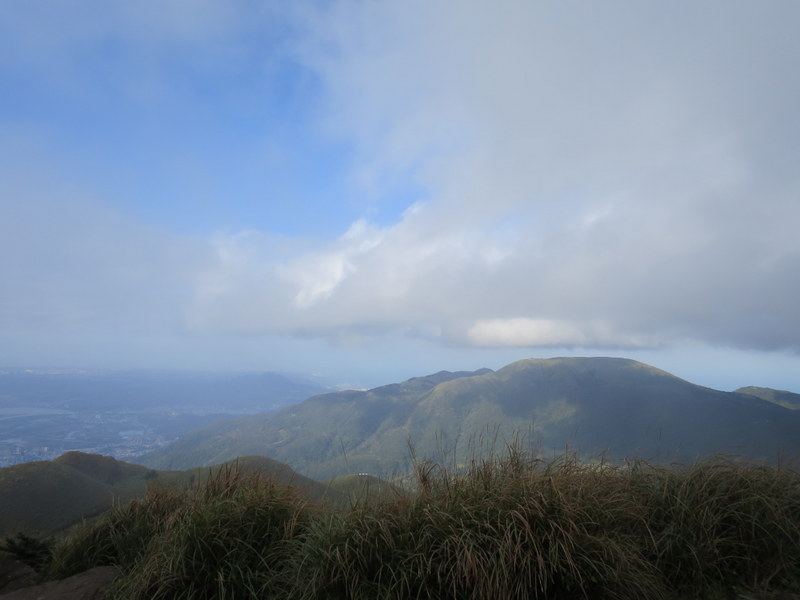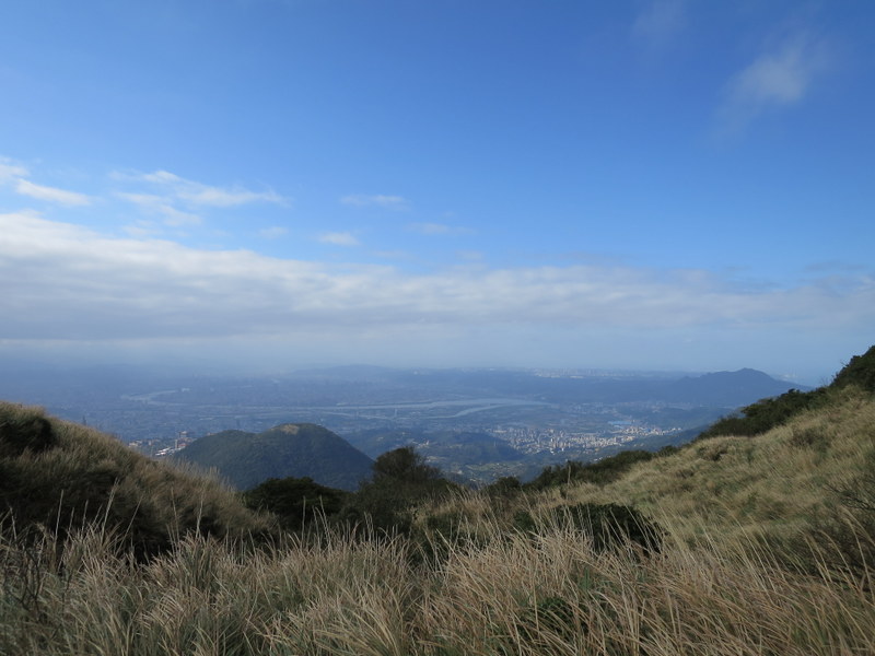 Rain, rain and more rain – and mud, such a great combination! Plenty of both to keep me wet and disgustingly dirty for a whole week. Hey, at least we had no wind, or at least not at the same time as the rain. We even had 3 whole days when there was no rain at all! Overcast maybe, cold, damp, and very wet underfoot, but rain, no. And there were even 2 days when the sun came out briefly and we had blue sky for a few minutes. Luxury! This is the only blue-sky view of Taipei City that I got, taken from Qixingshan 七星山, Day 3.