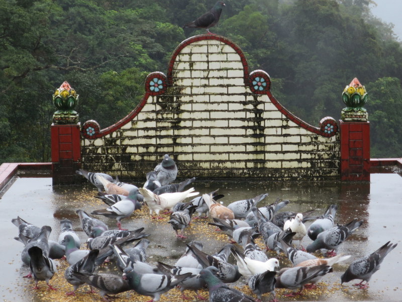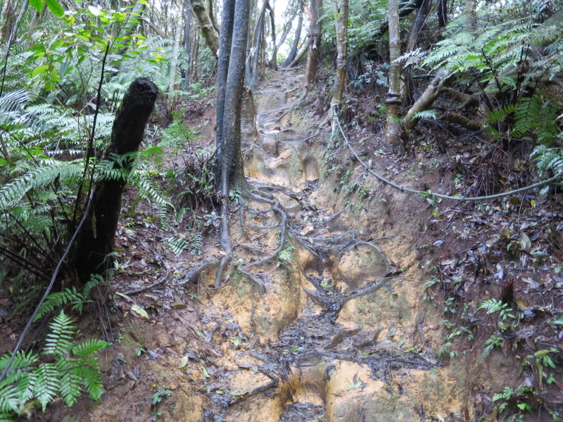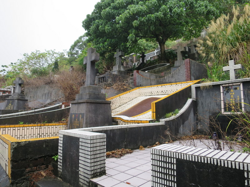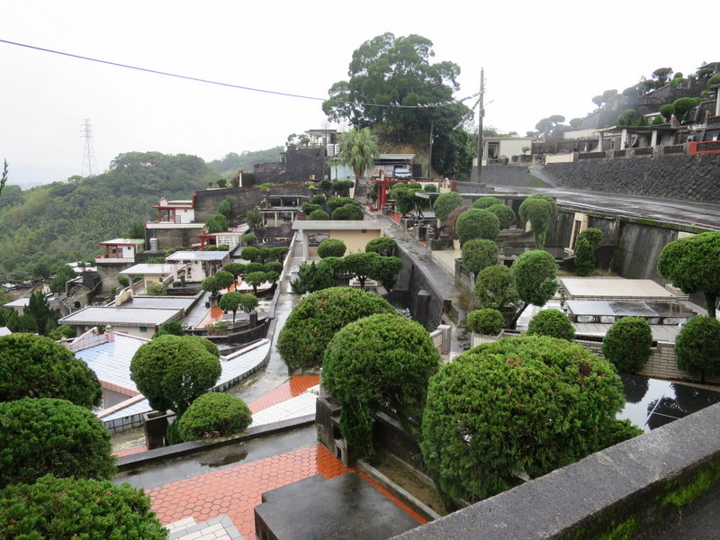 Section 6 marks the start of the southern section of the trail, and involves quite a journey time-wise for me to get to the far eastern side of Taipei over at Nangang 南港, over 2 hours each way. Good job I left home every day at 5:30 am to get outside to the first bus! Section 6 was done on Friday February 4, CNY Day 4, and guess what, well it rained most of the day. Light steady rain – but still, rain is rain! The trail runs from China University of Science and Technology 中華科技大學, not far from Nangang Station, going up and along and down eventually to Linguang 麟光 MRT Station. I had done the first part of this trail many times, on the stone paths that lead up to the 95 Peak. The second part was completely new to me, here the stone path finished, and instead there was mud, and more mud. But it was very interesting, even though we again went through many graveyards. One of the grave roofs was being used to feed the pigeons!