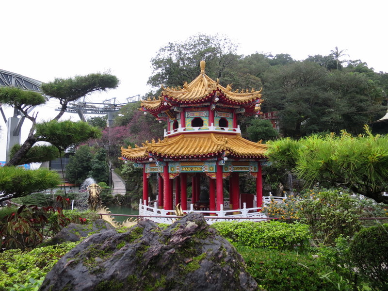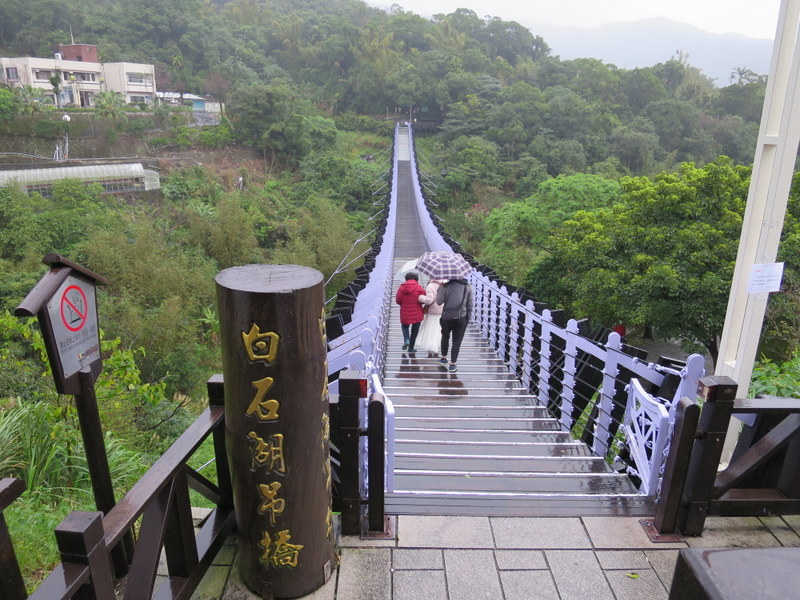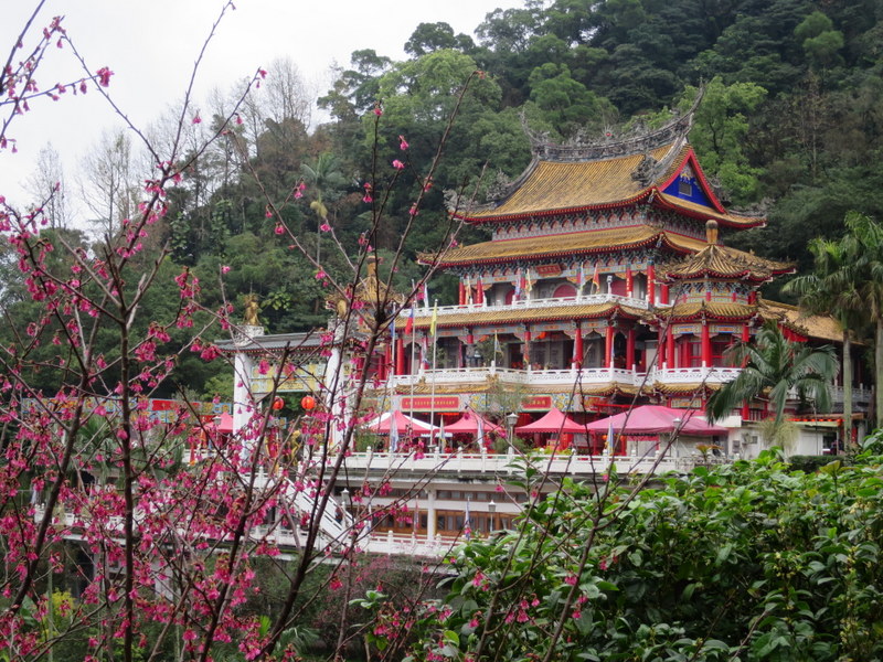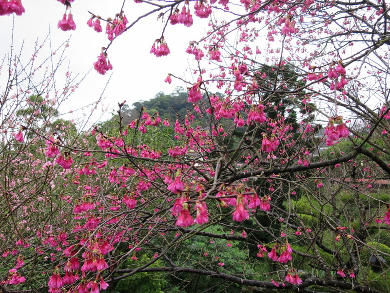 And so to Section 7 on Saturday February 5, CNY Day 5, and what a wonderful way to finish the Taipei Grand Hike. This section is a big loop, starting and finishing at National Chengchi University 國立政治大學, near Taipei Zoo and goes up to Maokong 貓空 . I had been up there on the cable car several times, but never walked up the trail, which goes right up to the cable car terminus. Much of this trail section is newly done, and it’s wonderful. It starts on the Zhinan Temple 指南宮 Trail, goes up through the cherry blossom, down to the river, and up again through the tea plantations. A huge number of steep steps, but really interesting, and full of people enjoying a day out too. It was overcast all day, and didn’t rain until I got to the bus stop to come home!