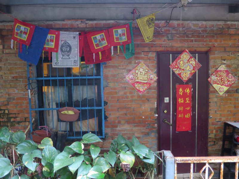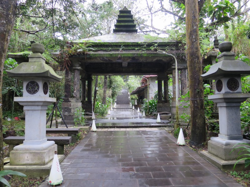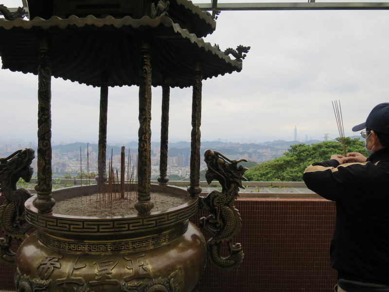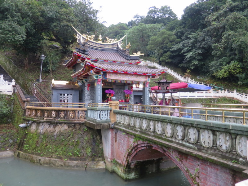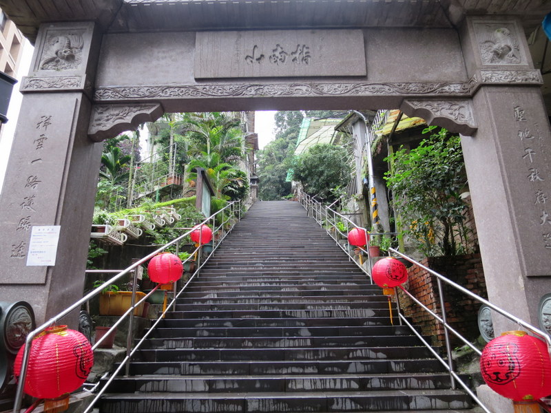 Thursday February 3, CNY Day 3, Section 5, and local people were starting to get out and about. The trail runs from Bishan Temple on Bishan Mountain 碧山巖 to Jiantan 劍潭 MRT. There were lots of people on the trail, mostly in family groups, everyone with an umbrella, and it rained most of the day! This section is very close to Taipei, and I had done part of it many times. The main sounds were of airplanes taking off from nearby Songshan Airport, and the chanting broadcast from the temples and graveyards. There are many graveyards up there, including a Christian one, and there are many gruesome stories told about crimes that have taken place up there, plus haunted temples. The main viewpoint was all in fog, so it all added to the eerie atmosphere! A lady asked me to take her photo at the viewpoint, holding a sign saying ‘98’ indicating the number of times she had climbed up there in the past 2 years! The trail section ends just above Jiantan MRT Station near the Grand Hotel, an old military area, and full of temples and shrines.