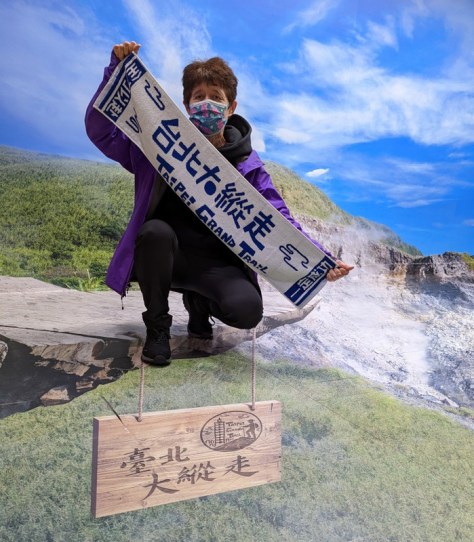 Updated February 18, 2022: I went today to the Geotechnical Engineering Office, the government office responsible for the Taipei Grand Trail. The staff confirmed that the ‘Hiking BIJI’ app (健行筆記) which marks the whole trail, for the time being anyway is limited to those who have Taiwan listed as their location on Google PlayStore. The photo above is of me with my Taipei Grand Trail towel, collected today on presentation of my photo collage, taken at their 3D photo wall! YES! Mission Accomplished!