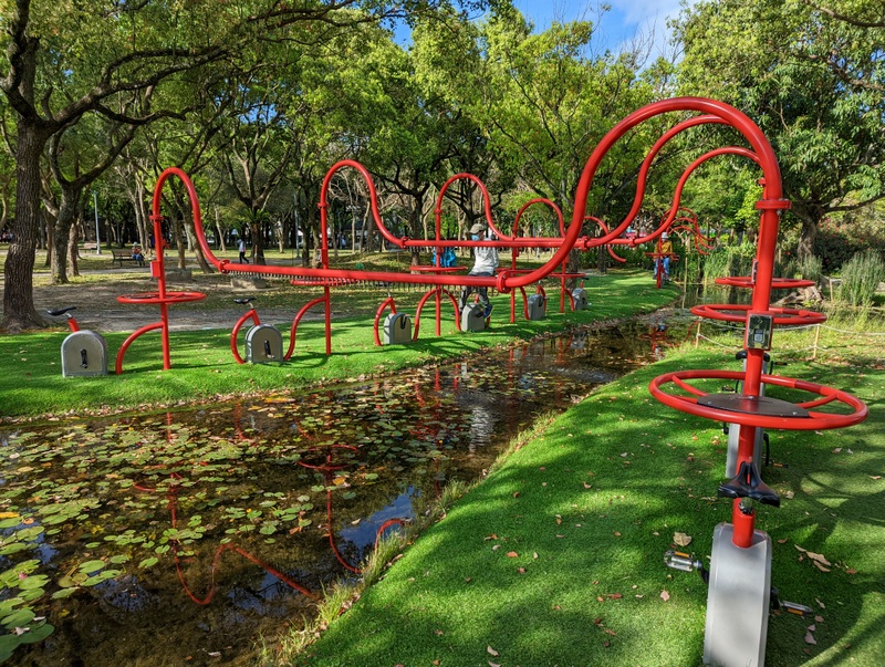 While for those more interested in staying in the city, in Taipei’s Da-an Forest Park, there’s a series of water fountains that are powered by pedal power…