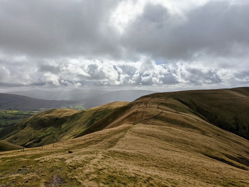Nestling is not exactly the right word for what Sedbergh does, because the wind is usually so strong that you more likely get the impression that the town is holding on by the skin of its teeth or the claws of its hands to the side of the fells that anchor it down so it doesn’t blow away. At least that was the case on Saturday, when I arrived in Sedbergh for my first CMS (Church Mission Society) Link Church visit of this home leave. It was a typically blustery day, with a cold weather forecast of high winds with sunny spells and showers ~ but how could I not go up those Howgill Fells? I was blown up or staggered up all the way via Winder, Arant Haw and Calders to The Calf 676 m (2,218 ft) and back ~ that’s all the way over the sleepy elephants, so named by Wainwright, and it so fits!