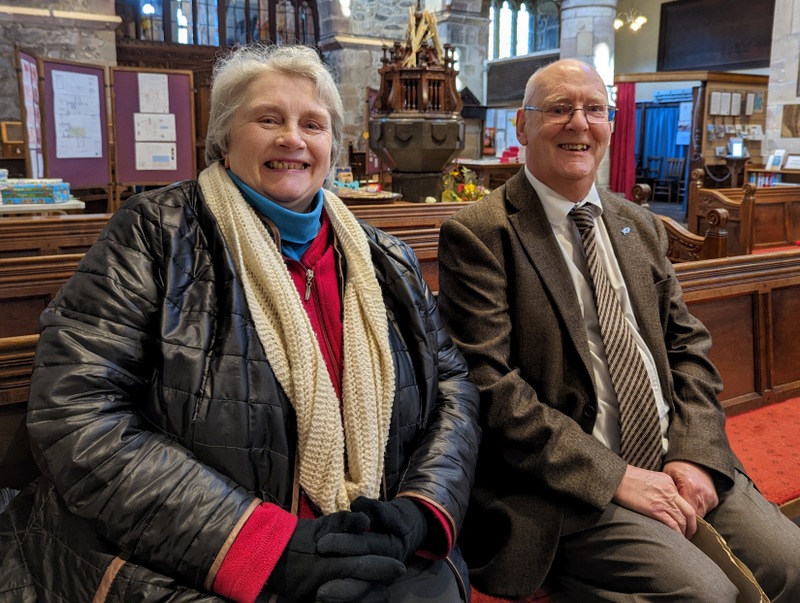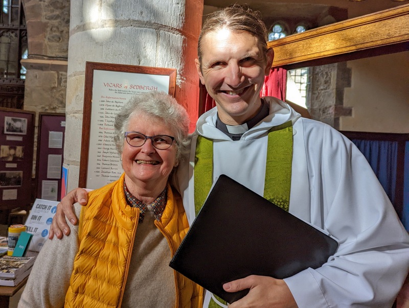 Since my previous visit in January 2019, they have a brand new vicar, Rev. Andy Burgess, who started in January 2022, taking over from Rev. Andy McMullon, who has moved to Belguim. Yes, Sedbergh Church is dedicated to St. Andrew and both present and past vicars are also called Andrew. The previous one to Andy McMullon, who I also knew, was Rev. Alan Fell, so it’s definitely the amazing A-Team at Sedbergh! They are all so lovely. This is Andy Burgess with Susan, one of the world’s most cheerful churchwardens …