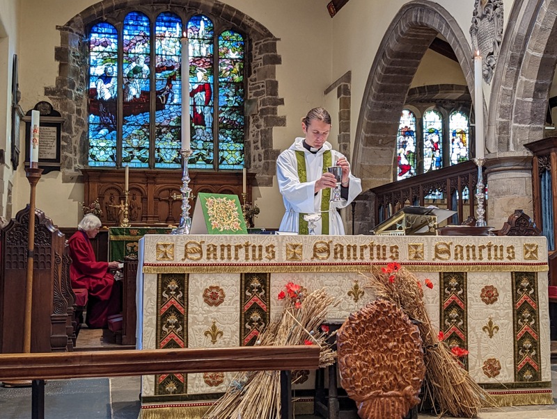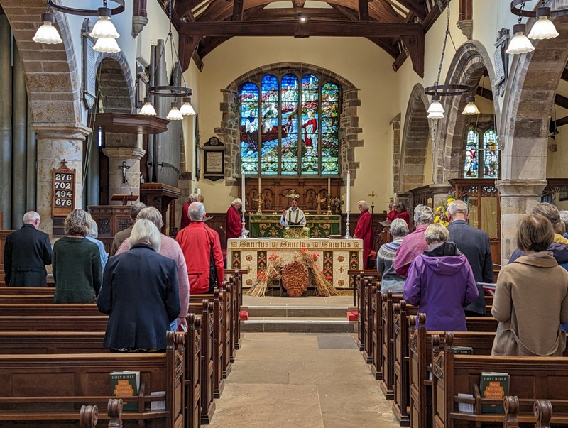 Since September, St. Andrew’s Church has changed the time of its main Sunday service from 10:30 am to an hour earlier, 9:30 am, so that Andy can get up to Dent for the service there at 11:15 am. Fortunately, he has a whole team of wonderful people who help out with services and running everything, everything seems to work so well! The church was looking lovely too, having just had Harvest Festival last week….