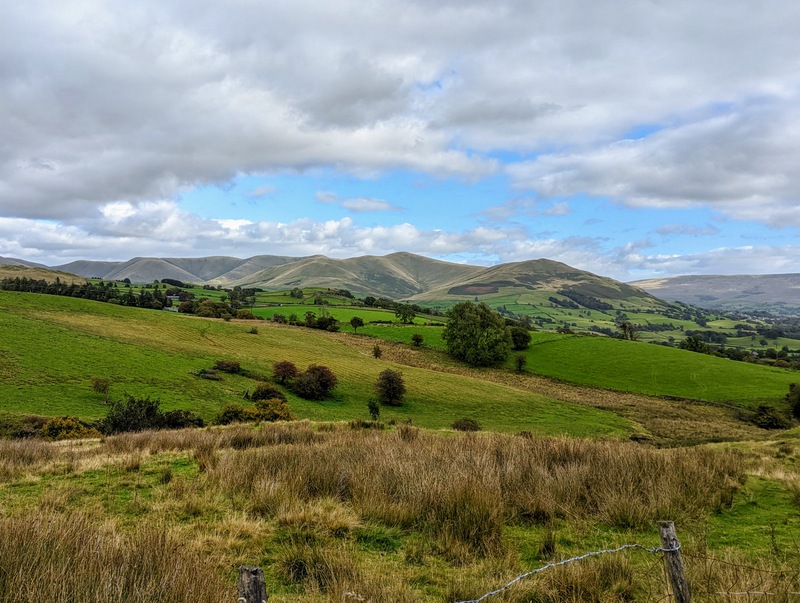 while up above the town are the real ‘sleepy elephants’, the Howgill Fells, gentle, grassy rolling hills that can be seen from far and wide, and are such a pleasure to walk on and climb up, especially appreciated after all the rock, stone and boulders of the nearby Lake District. This is the view of the Howgill Fells of all who arrive by car from Kendal, from the M6, from all points west….