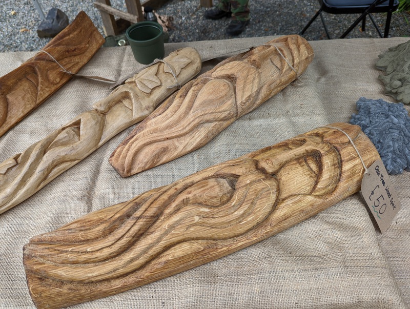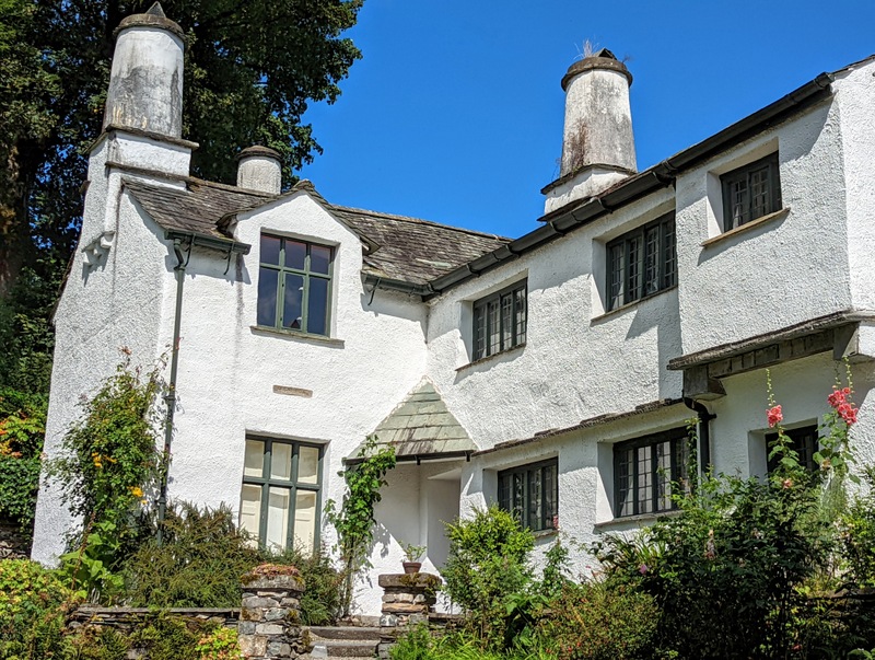 The house itself is a traditional Lake District stone and slate farmhouse with round chimneys. A quaint cottage garden is planted with many of the plants and trees that George loved, including fruit trees, roses and phloxes.” And for the Heritage Open Day, the NT had invited a local woodcarver to come and share his skills in the garden ….