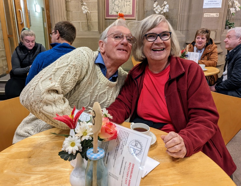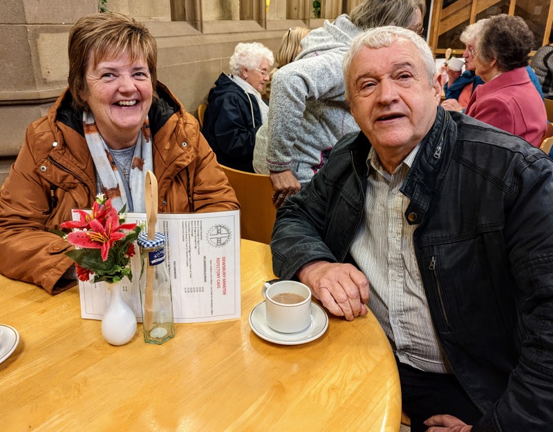 Anne and some of the ladies kindly invited me to join them for lunch. Over lunch, I asked them all to share with me some of the good things that were happening in Dewsbury and that were not immediately obvious when walking around the town. We discussed local government initiatives, the town council and the local MP. One of the ladies said that the best thing in Dewsbury was ‘Churches Together’, and everyone else agreed. They were all impressed how the churches in Dewsbury join together (although they expressed disappointment that the evangelical and RC churches were invited, but didn’t participate) for so many wonderful services and outreach activities, particularly mentioning the Baptists, Elim Pentecostal, and the URC Church which is just over the road.