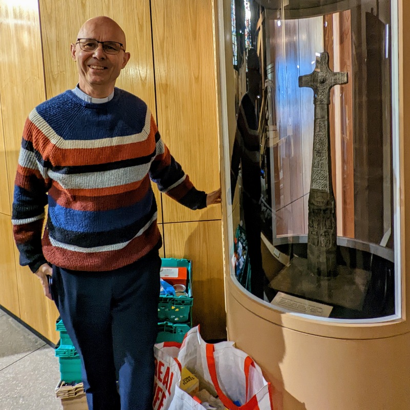 In the minster Heritage Centre, I persuaded Rev. Neil Walpole to stand for a photo in front of the exhibit of the preaching cross where Paulinus preached, now also used temporarily for storing gifts for the food bank. I am sure Paulinus would approve.