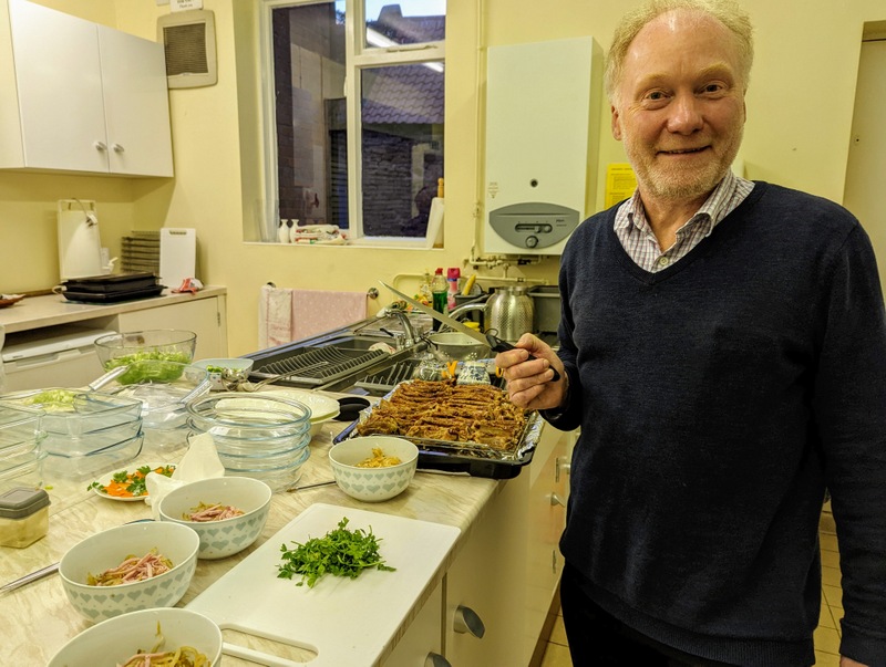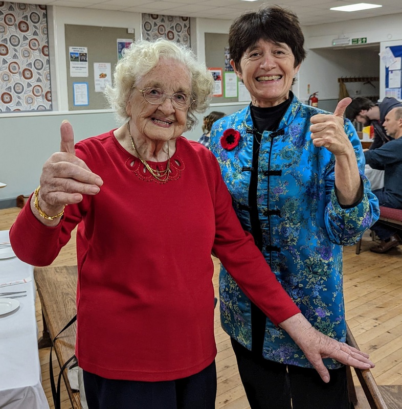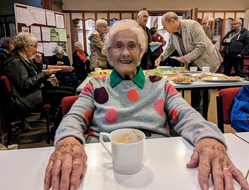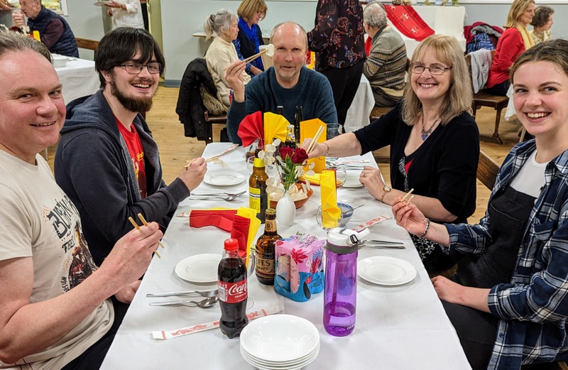 They had done something similar on my last visit to Haughton in 2018 (see that post here, and for my visit in 2015, see this post here – check out the photos, nobody looks any older, of course!) We were all encouraged to wear traditional Chinese colours of red and gold, the tables were decorated in the same colours, and each person had their own chopsticks too. I shared my PowerPoint before the meal started, and then off we went. I had many interesting conversations, and heard stories of life on the edges, from those suffering with long Covid, of broken families, of those struggling to find work, of how the youth and children’s ministry at St. Andrew’s hasn’t really got going again since the pandemic, and how they’re hoping to restart it soon, the St. Andrew’s foodbank, and the Alpha course which is bringing a steady stream of newcomers to the church. Several people there had only just been confirmed the previous week, as a result of that Alpha course, it’s clearly helping a lot of people. There were lots of interesting people to meet! I had invited Naomi, one of my former youth group members from Heighington who lives nearby, and she sat with Judith and Ken. It was Judith’s mother, Jean Robson who was the faithful leader of the Darlington CMS group for years and years, until her death in her mid-90’s a few years ago.