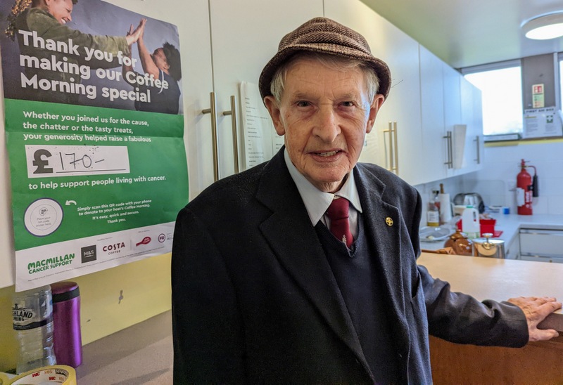 In the afternoon, I had arranged to go along to the Heighington Church Monday afternoon drop-in coffee hour, which attracts lots of people each week, including many who are not particularly part of the church. The curate, Rev. David Lucas was there, in charge of St. Matthew and St. Luke’s Church, Darlington, another of my link churches. There was also a 90th birthday celebration for one of the ladies, here they all are getting ready…