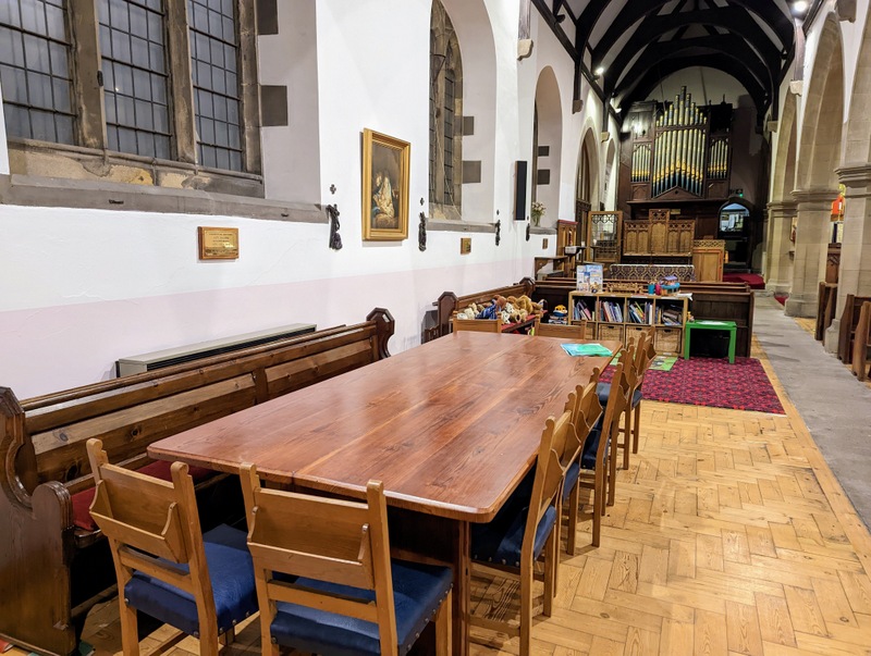 St. Andrew’s has just completed a reordering project in the left aisle of the church, taking out the pews and using 4 of them to make a big table (with new chairs coming from the old Darlington Memorial Hospital Chapel), installing a kitchen and toilet, and making the whole place so much more accessible and welcoming. With the church hall being hired out to many different community organizations, so the church can use their own space for things like messy church and children’s holiday club activities – there’s lots of children in St. Andrew’s these days! With many churches reporting how difficult it is to resume children and youth activities since the pandemic, it’s really encouraging to see the way St. Andrew’s has grown and flourished.