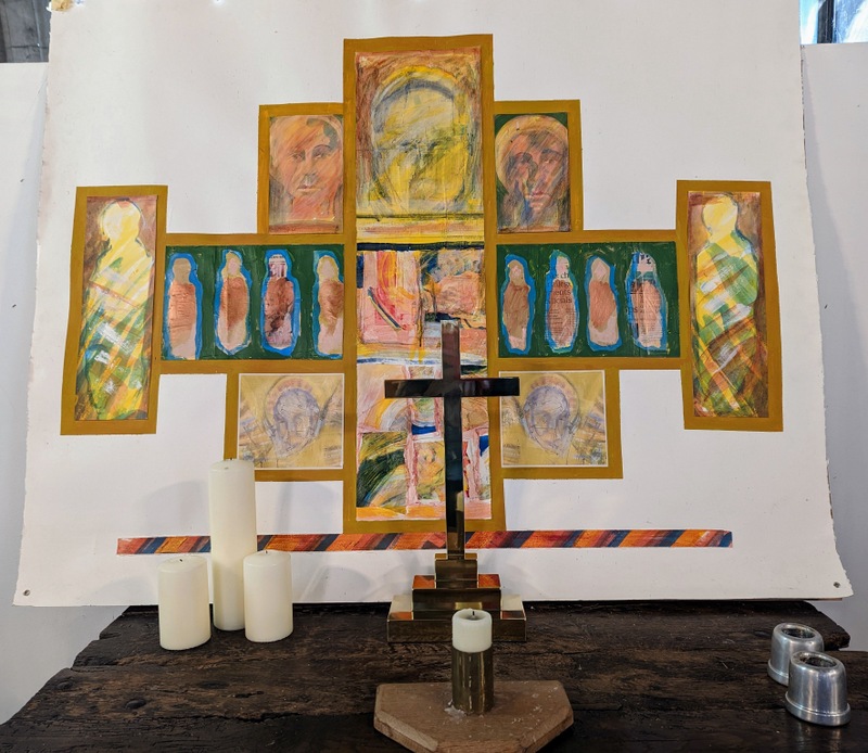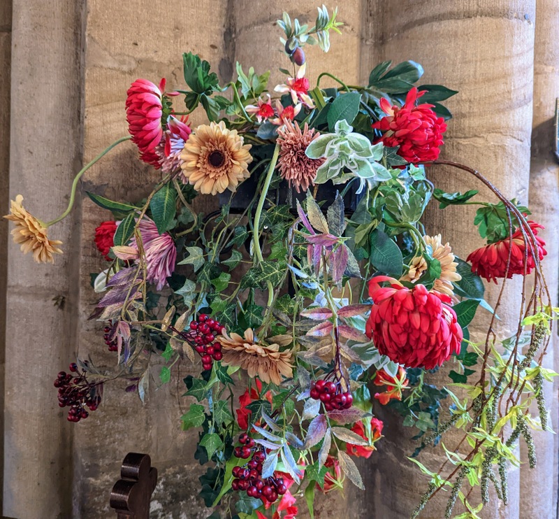 Much of this art and all the many projects were introduced to the church under the artistic leadership of the much-loved previous rector, Rev. Rupert Martin and his wife Sally, who retired last year after 26 years at Sandal. They’ve now moved to Bristol and long ago invited me to visit – but I’m running out of time, and Bristol is way off my beaten track. Sorry Rupert and Sally! They were also responsible for the Tree of Life Memorial Garden at the back of the church, which continues to this day, though there are ongoing challenges maintaining the stones and clearing the weeds around the stones ~ fortunately it’s still looking good!