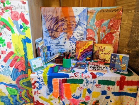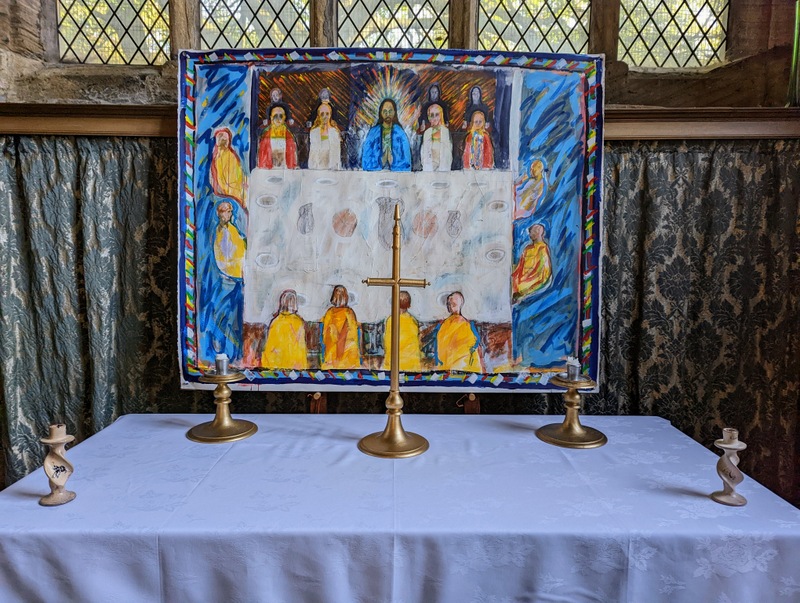 Sandal Magna is on the south side of Wakefield, along the Barnsley Road, and St. Helen’s Church (named after Helen, the mother of Emperor Constantine the Great) may be dark and austere on the outside, but inside it is warm and welcoming. There’s lots of beautiful artwork filling the church, on the altar, in the side chapels, and the children’s area is especially colourful, check it out below!