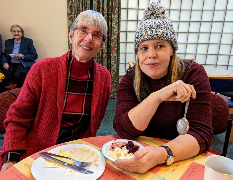 After the service, we had a shared lunch, their first one since the pandemic. The food was delicious, especially the puddings! Hannah and a group from St. Helen’s also joined us for lunch, after which I gave a short talk followed by questions. There were lots of good questions!