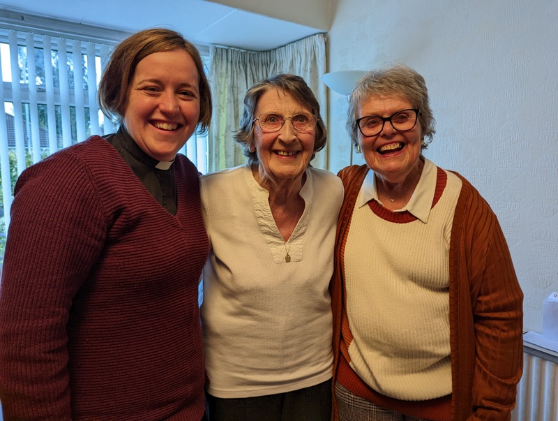 And finally, off I went with Hannah to visit Mavis, one of the original overseas mission committee in Sandal who set up the CMS link with me as long ago as 1989. In those days, the committee was chaired by Derek Wales, the connection then being that the Diocese of Wakefield had a companion diocese partnership with the Diocese of Mara, Tanzania, which is where I went for language school many moons ago. This is us with Mavis and her good friend Teddy….