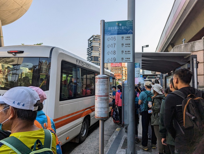 And so there I was, on Saturday April 29, 2023 setting off at 5:20 am heading for the Yang-Ming Shan Mountains. Living in Taipei City, I can now get to the bus stop at Jiantan MRT Metro Station – opposite the new performing arts centre (see photo below) – in time for the M1 (市民小巴1) minibus that leaves at 6:30 am going up to Fengguizui 風櫃嘴, for the start of the walk at Fengguikou 風櫃口. The bus was packed out, and I was nearly the last person on, so I had to stand all the way up that very steep and very winding road – the road was full of very energetic cyclists. Don’t miss that bus – the next one is 10:10 am, so if you miss it, the only real alternative option is to get a group together for a taxi.