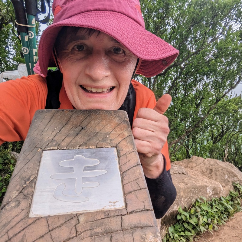 We started walking from the bus stop at Fengguizui – 7:00 am was the time the bus got there, and we all took off from there. Many on the bus were doing the whole traverse, and we kept seeing each other all day long at different places en route. The hike officially starts at Fengguikou (see marker post above), about 20 minutes walk up from the bus stop. An hour later, at 8:00 am, I got to the first summit, Mt. Ding 頂山 (768 m)…