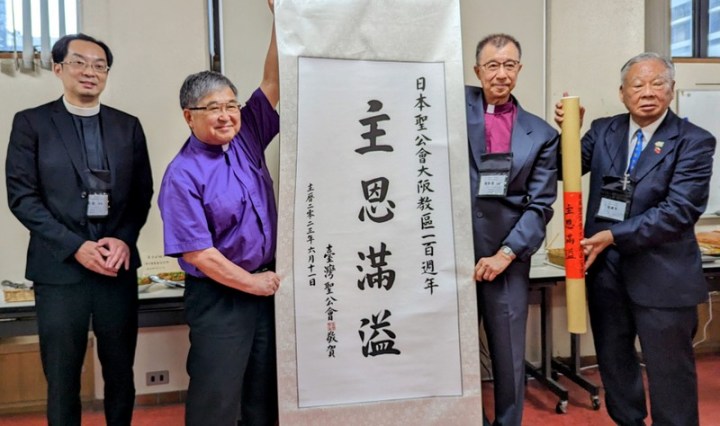 ‘Overflowing with God’s Grace’ 主恩滿溢 (Zhǔ ēn mǎn yì) was the most appropriate and beautiful phrase for a scroll of Chinese calligraphy, written by Mr. Tian-Jian Chang 張天健 and presented by the Bishop of Taiwan, Lennon Yuan-Rung Chang to the … Continue reading Centenary Celebrations of the Diocese of Osaka ~ and we were there! ❤️