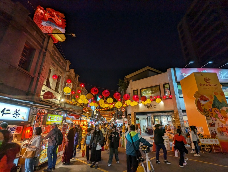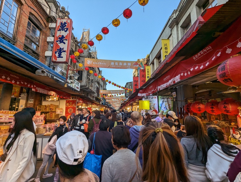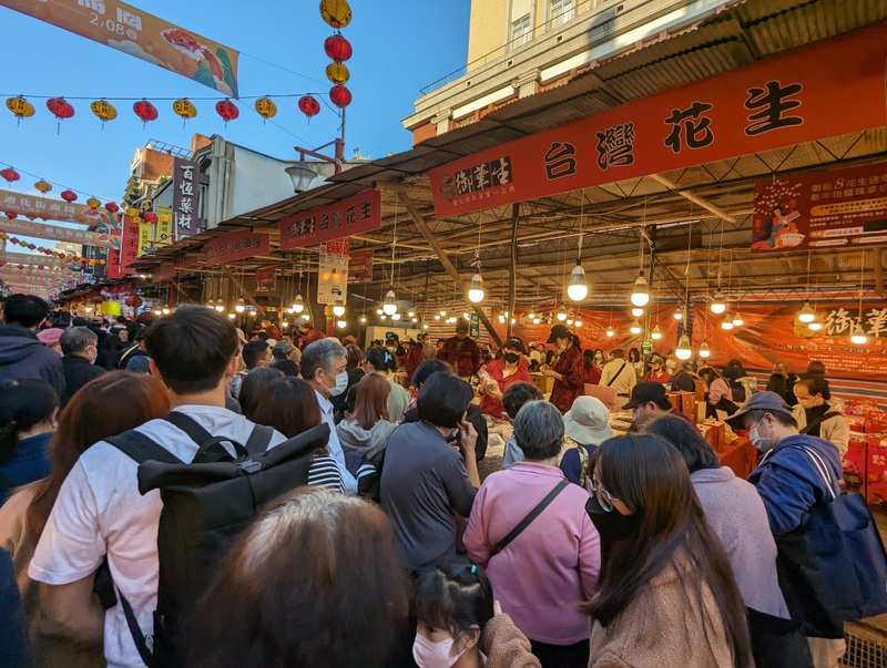 Possibly the best place to go in Taipei City for New Year shopping is Taipei’s oldest street, Di-Hua Street 迪化街, near the river at Dadaocheng. The buildings date from the 1850s and the street is full of old shops selling Chinese medicine, tea and fabric. At Chinese New Year, there’s a huge street market and crowds of people. Beyond the crowds are some more beautiful old buildings, many still selling traditional wares, and quite a few reinvented as art places or coffee shops.