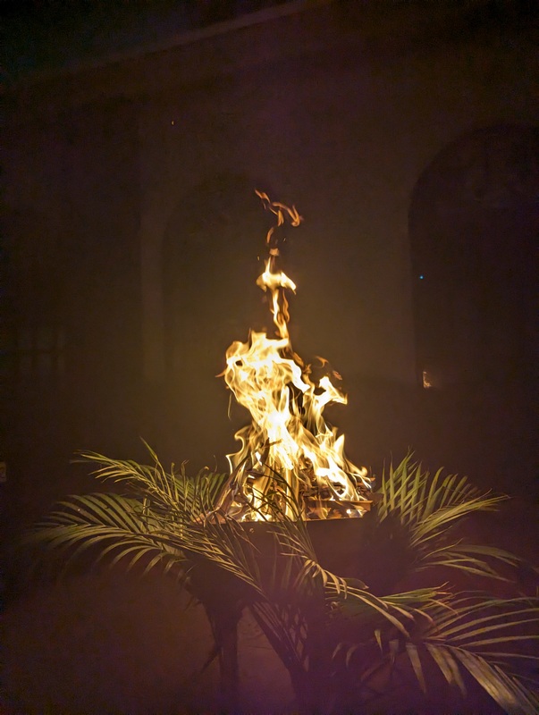 The Easter Vigil on Easter Eve, Saturday, started at 7:30 pm with the lighting of the Easter fire outside the cathedral, and the service started in candlelight.